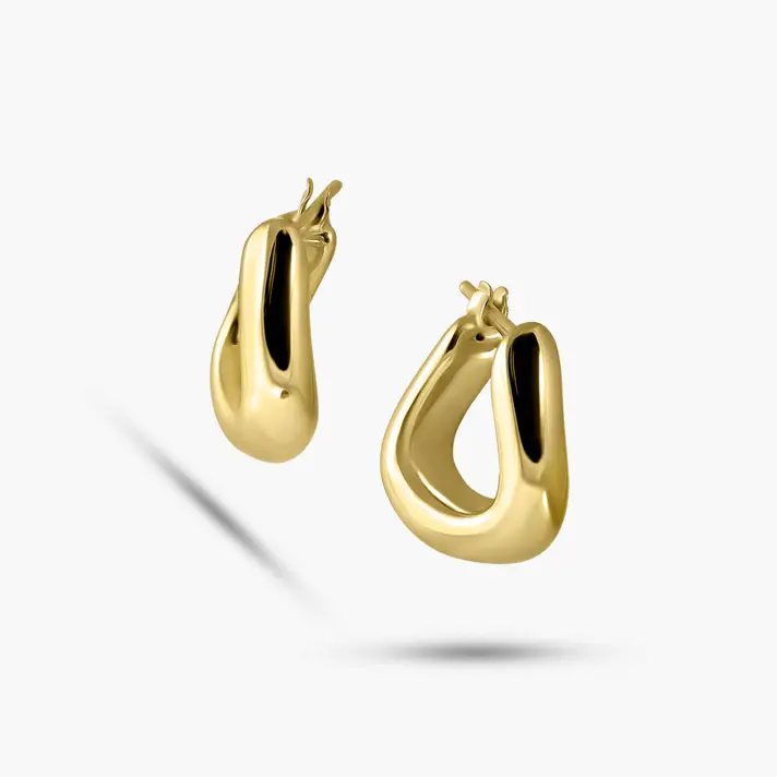 עגילי זהב 14K במראה חישוקים לא סימטריים בתנועה אמורפית להוספת עומק ועניין וייחוד תוך שמירה על קלאסיות ותחכום. מידות העגילים 1.3 ס"מ/רוחב 1.5 ס"מ
