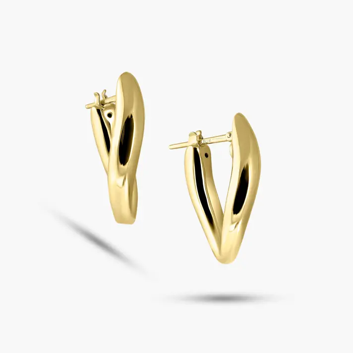 עגילי זהב 14K במראה משולשים מסתובבים להוספת עומק, עניין וייחוד תוך שמירה על קלאסיות ותחכום. מידות העגילים 2.5 ס"מ