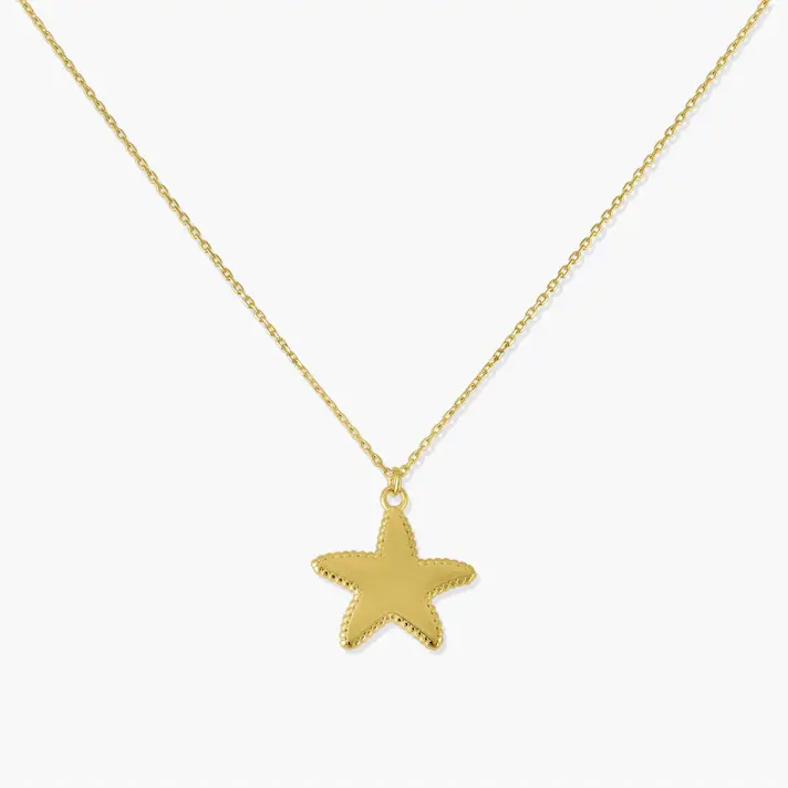 שרשרת זהב 14K עם תליון כוכב ים המסמל הרפתקנות ואהבה לים, כי הוא חי בין הגלים. אורך השרשרת 42 ס"מ + 2 ס"מ הארכה. קוטר התליון 1.1 ס"מ.