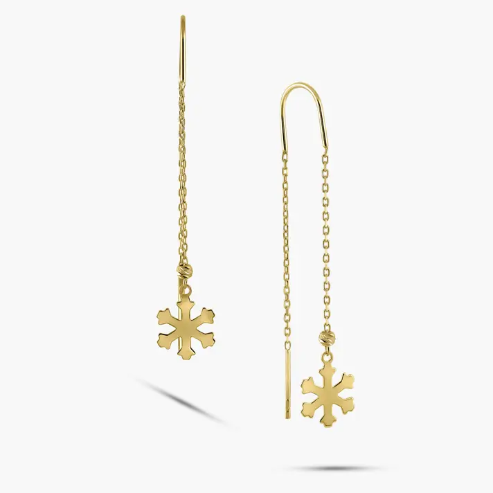 עגילי פתית שלג מסדרת האגדות הקסומה, עשויים זהב 14K תלויים על האוזן. אורך העגיל 4.4 ס"מ.