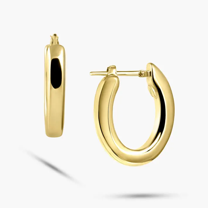 עגילי LUMIA- חישוקים מעוגלים עשויים זהב צהוב 14K בעיצוב מלא ונוכח, עם גימור מבריק שמחזיר אור מכל זווית. העגילים מצטרפים לקולקציית DAY AND NIGHT- הצורה האובלית והמעוגלת יוצרת מראה עוצמתי אך רך, שמרגיש מדויק גם ביום, גם בלילה. קוטר העגילים 2.3 ס"מ.