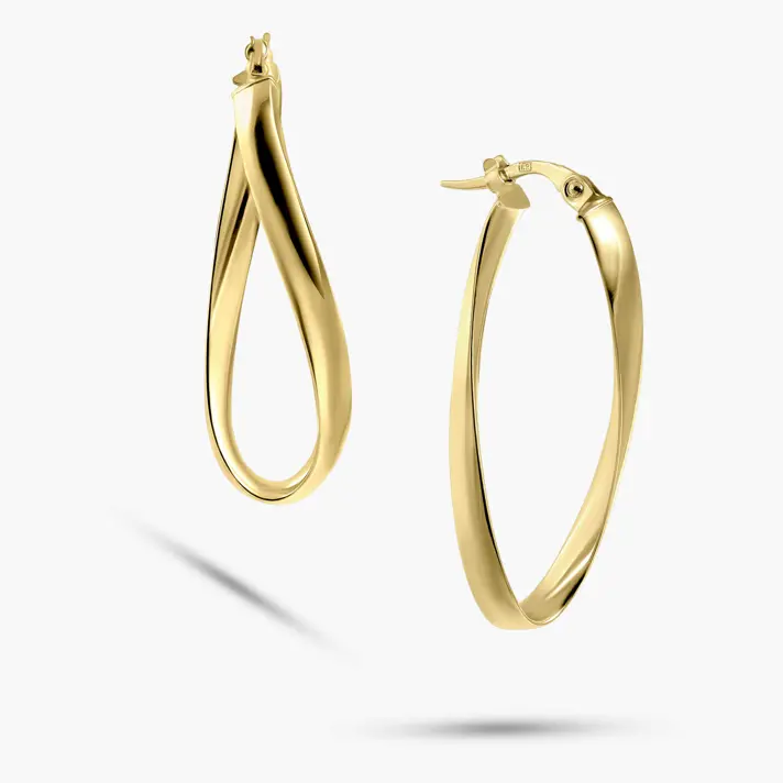 עגילי חישוקים ארוכים מזהב 14K עם טוויסט