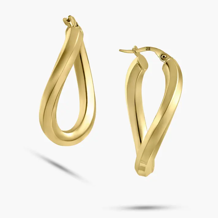 עגילי LIRA - חישוקים במראה טיפה מתרחבת ובעיצוב גלי ומתעקל, עשויים זהב צהוב 14K בגימור מבריק חלק.הקו המתעקל מעניק לכל עגיל תחושת זרימה ותנועה רכה עיצוב עם נוכחות שקטה שמדגיש את הפנים בעדינות.הדגם הוא חלק מקולקציית DAY AND NIGHT עגילים על זמניים שתמיד באופנה, גם לערב, גם ליום-יום. כל יום. כל היום! LIRA שם בהשראת אור מתנגן, שמאיר מבפנים ומשתלב בכל קצב חיים. מידות העגילים 3*1.8*3 ס"מ.