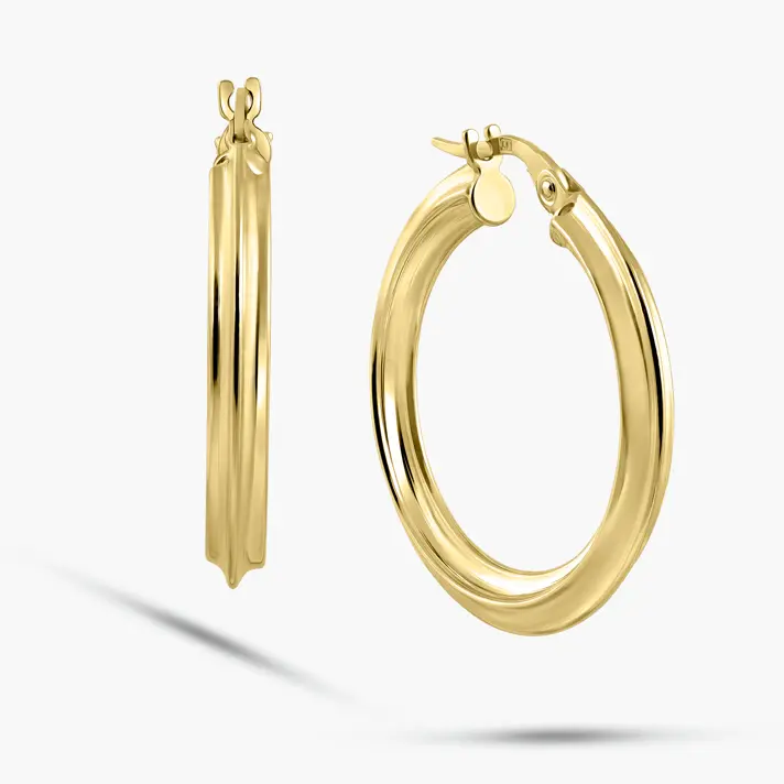 עגילי ALME'A- חישוקים בגימור מבריק וקווים חלקים וזורמים עשויים זהב צהוב 14K.