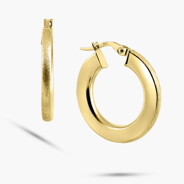 עגיליLUMIRA- חישוקים עגולים ועוצמתיים בעיצוב חלק ונקי, שמשלב בין מראה מודרני למגע של ברק טקסטורלי עדין. חצי מהעגיל מלוטש למראה מבריק וזוהר, בעוד שהחצי השני מחוספס בגימור מטאלי שמשדר עומק ותעוזה. העגילים מקולקציית DAY AND NIGHT – עגילים על-זמניים שתמיד באופנה, גם לערב, גם ליום-יום. כל יום. כל היום! קוטר העגילים 2.3 ס"מ, עובי 3.5 מ"מ.