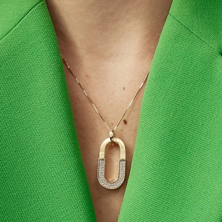 תליון זהב 14K אובאלי משובץ זרקונים