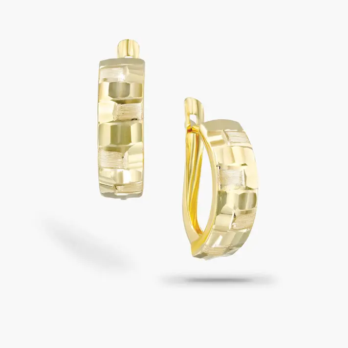 עגילי זהב 14K צמודים לאוזן בצורת בננה בעיבוד מחוספס. אורך העגילים 2 ס"מ