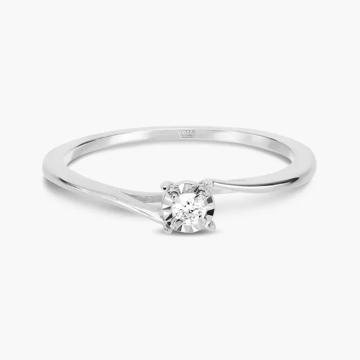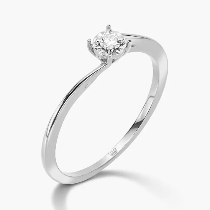 טבעת זהב 14K עם טוויסט ששומר עליה קלאסית אך מוסיף לה ייחודיות, משובצת יהלום סוליטר אמיתי ומנצנץ.