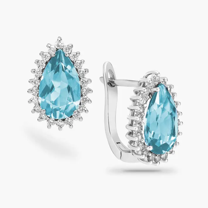 עגילי טיפה בשיבוץ יהלומים ובלו טופז