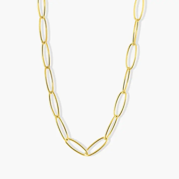 שרשרת זהב 14K בעיצוב חוליות אובליות דקות -ארוכות, עם גימור חלק ומבריק ליצירת מראה מודרני, נקי וקליל. העיצוב הנשי והעל-זמני הופך אותה לפריט לבוש שמשתלב באופן טבעי בכל לוק – לבד כטאצ' אלגנטי או בשכבות לתחושת שיק עכשווית. שרשרת מושלמת למי שאוהבת תכשיטים עם נוכחות שקטה ומדויקת. אורך השרשרת 45 ס"מ. מידת החוליות 2.2*0.8 ס"מ.