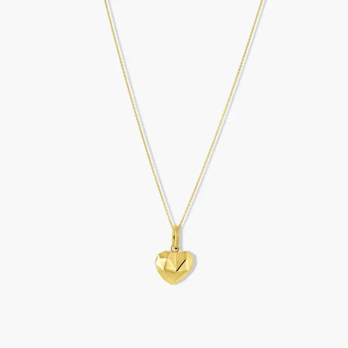 תליון לב מזהב 14K בעיצוב גיאומטרי חזק ומודרני, עם קווים חדים בהשראת אומנות האוריגמי. שילוב בין רוך הצורה לסימטריה חזקה יוצר מראה עכשווי שמביע סטייל, עוצמה ואהבה בלתי מתפשרת. תוספת מושלמת למי שאוהבת עיצוב ייחודי עם נוכחות. מידות התליון 2.8*1.8 ס"מ.