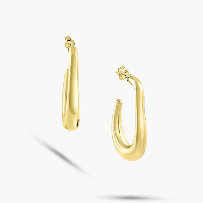 עגילי זהב 14K בעיצוב טיפה פתוחה עם גימור חלק ומבריק. הקווים הרכים והזורמים יוצרים מראה מודרני ונשי. מידות העגילים 3.5*0.7*2 ס"מ.