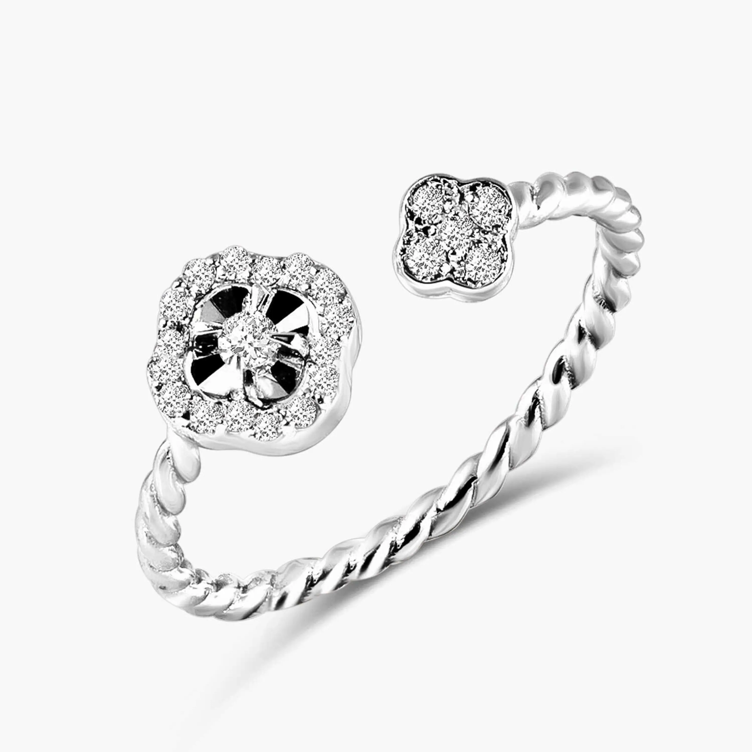 טבעת אלגנטית ומיוחדת, עשויה זהב צהוב 14K בעיצוב פתוח עם שתי יחידות פרחוניות משובצות 22 יהלומים טבעיים ונוצצים. גוף הטבעת מעוצב בטקסטורת חבל המעניקה לטבעת מראה יוקרתי אך גם קליל.