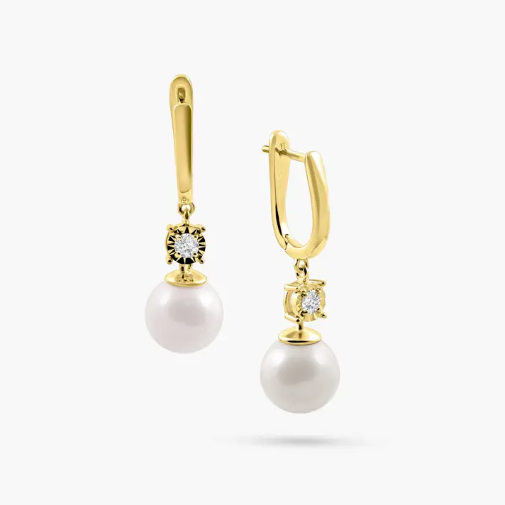 עגילי זהב משובצים פנינה ויהלום סוליטר