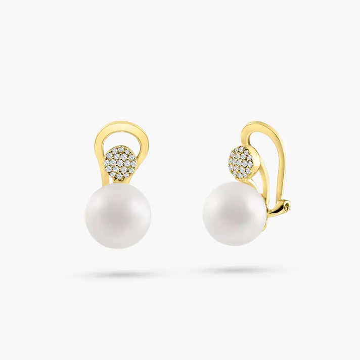 עגילי זהב בשיבוץ יהלומים ופנינה