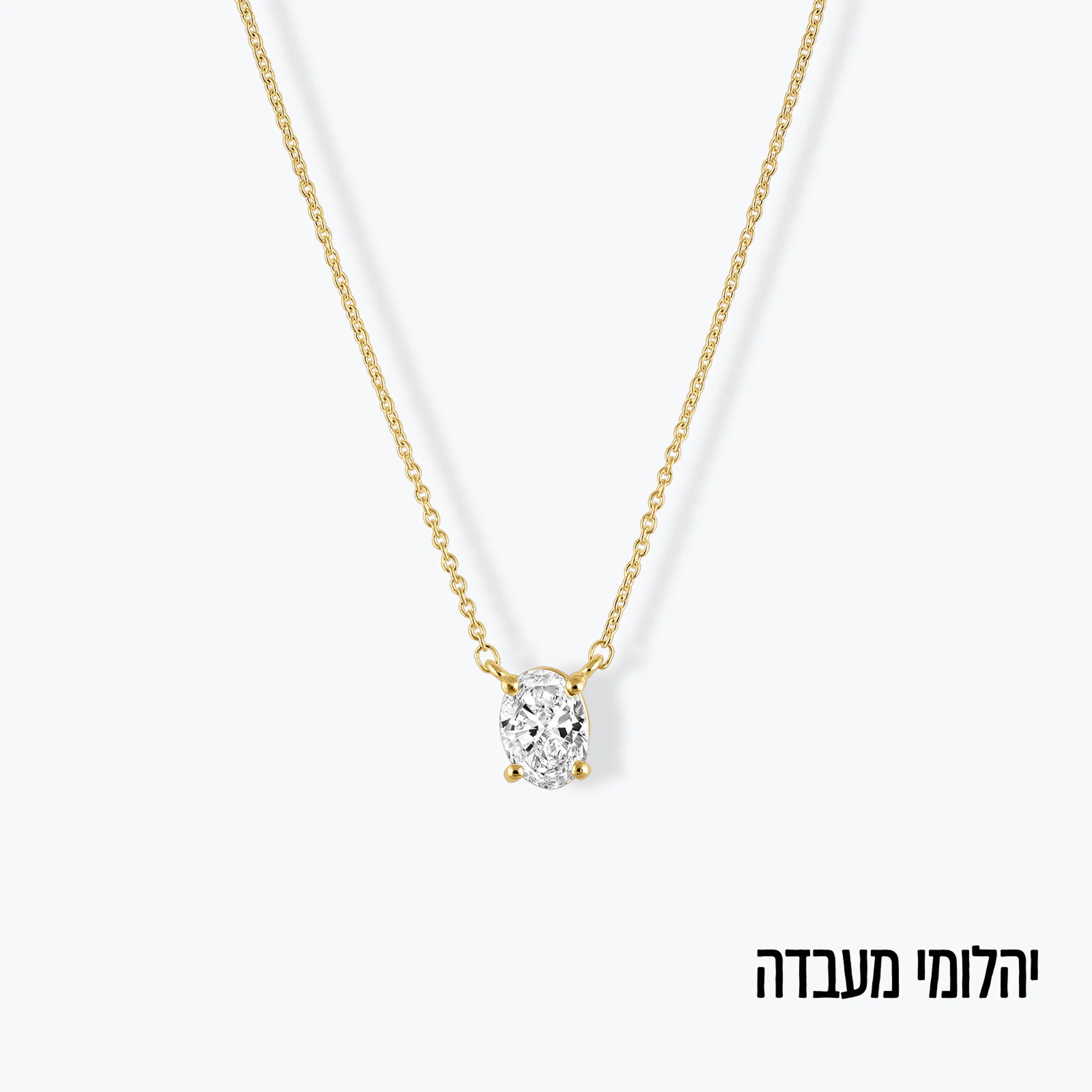 שרשרת זהב 14K בשיבוץ יהלום מעבדה סוליטר בחיתוך אובאלי נוצץ ומרשים.