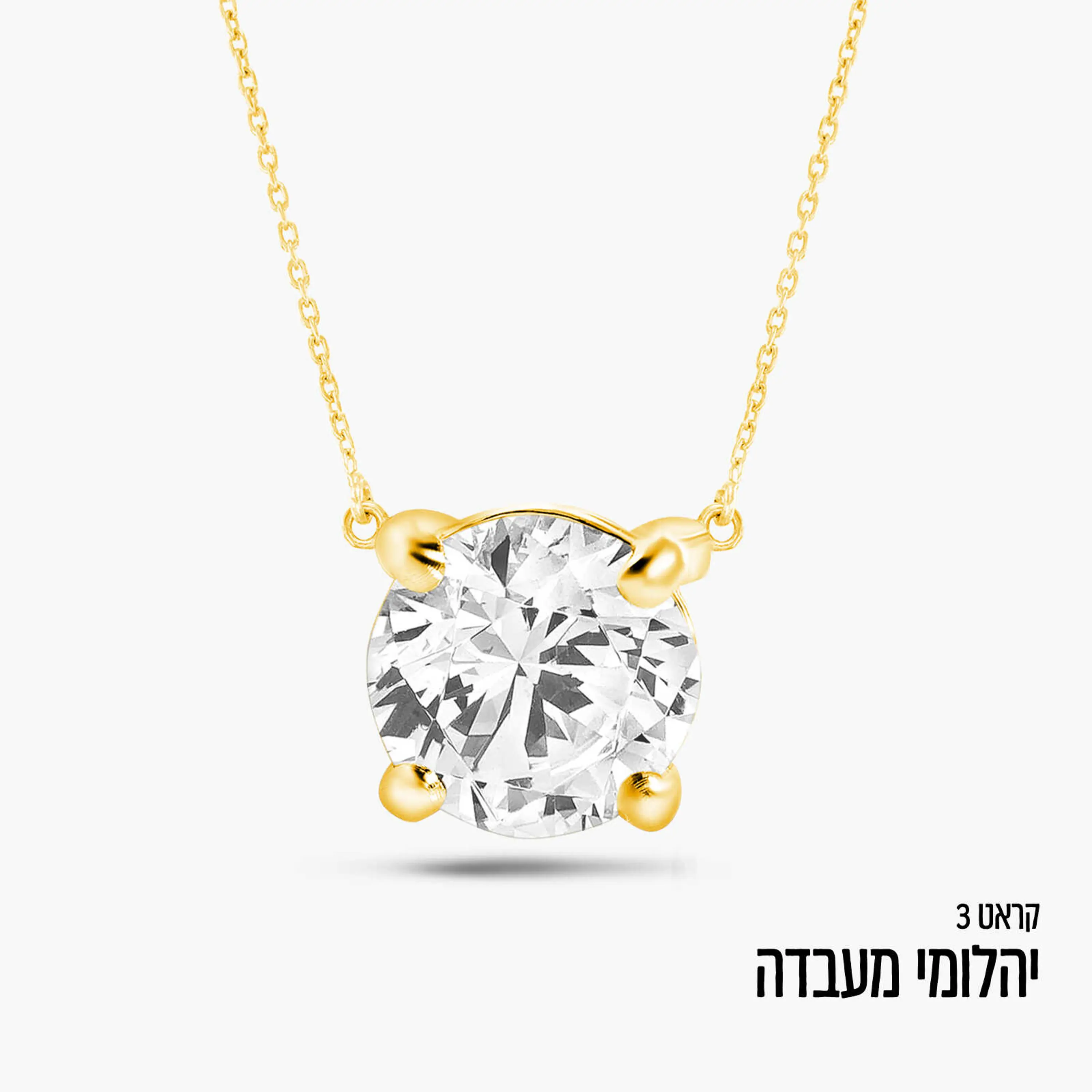שרשרת זהב 14K בשיבוץ יהלום מעבדה סוליטר נוצץ ומרשים במשקל של כ- 3 קראט.