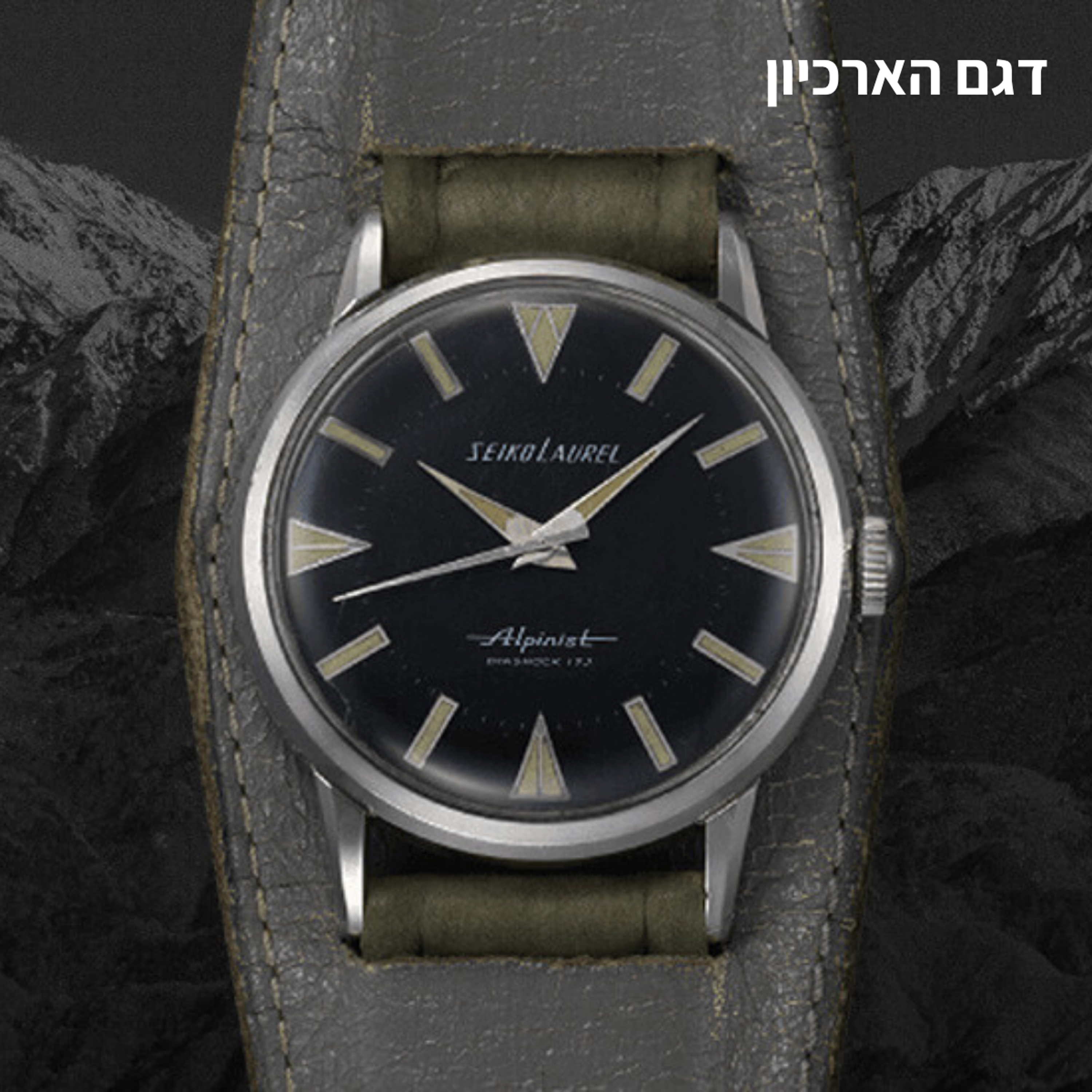 שעון Seiko Prospex Alpinist בעיצוב שממשיך את מורשת שעוני השטח של סייקו מאז 1959 כמותג שעונים ל״אדם ההר״. לוח השעון בגוון ירוק עמוק, בצבע המזוהה עם דגמי Alpinist, עם לוגו Alpinist מתחת לשעה 12 שמחזק את האותנטיות של הסדרה. גוף השעון עשוי פלדת אל־חלד בציפוי קשיח שמגביר עמידות בפני שריטות לאורך זמן. מנגנון השעון הוא 6R55 אוטומטי עם אפשרות למתיחה ידנית, שמספק עתודת כוח של כ־72 שעות (שלושה ימים), דיוק ואמינות גבוהים. השעון כולל ציפוי פנימי אנטי־רפלקטיבי על זכוכית הספיר הקמורה, המבטיח קריאות ברורה בכל תנאי תאורה. מחוגי השעון והסימונים מצופים בחומר זרחני מסוג LumiBrite לקריאות מיטבית גם בתנאי חושך. בנוסף, המנגנון כולל פונקציית עצירת מחוג השניות (Stop Seconds) המאפשרת כיוונון זמן מדויק בעת עצירת השעון. השעון עמיד במים עד 200 מטר, מה שהופך אותו מתאים גם לפעילויות בשטח וגם לשימוש יומיומי אינטנסיבי. רצועת השעון עשויה עור איכותי ומוסיפה אלמנט של יוקרה לרוח הספורטיבית של השעון. גב השעון מעוטר בחריטה של רכס הרים, המשקפת את חוויית הטבע וההר שמאפיינת את דגמי Alpinist של SEIKO.