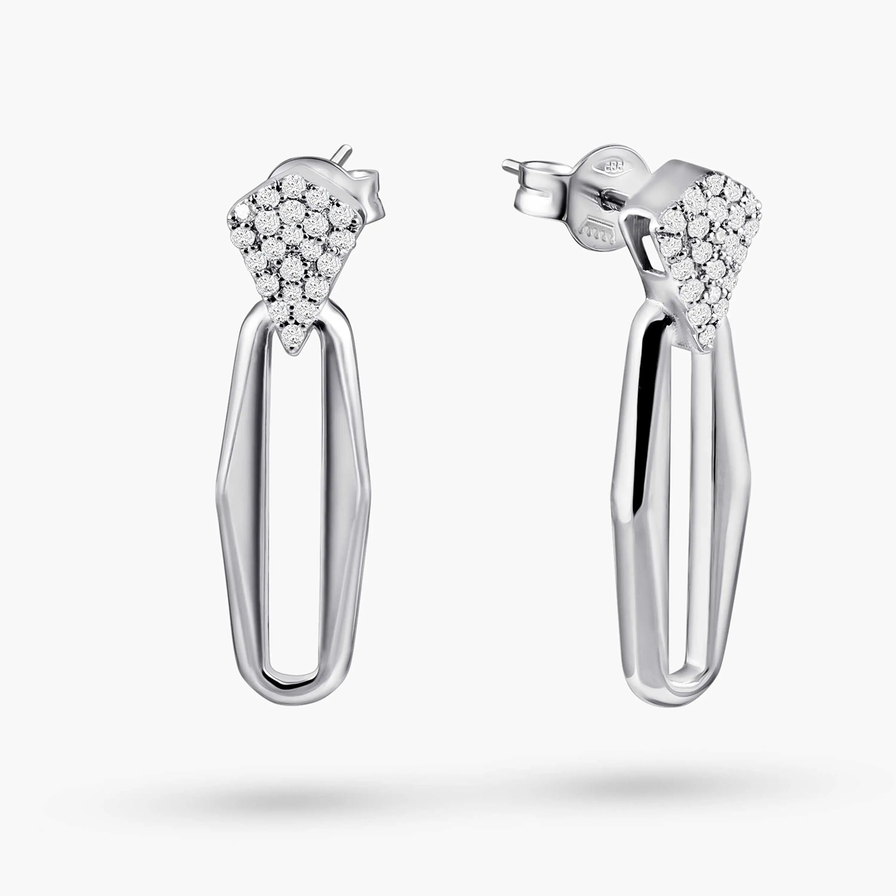 עגילי זהב בעיצוב גאומטרי עם שיבוץ יהלומים