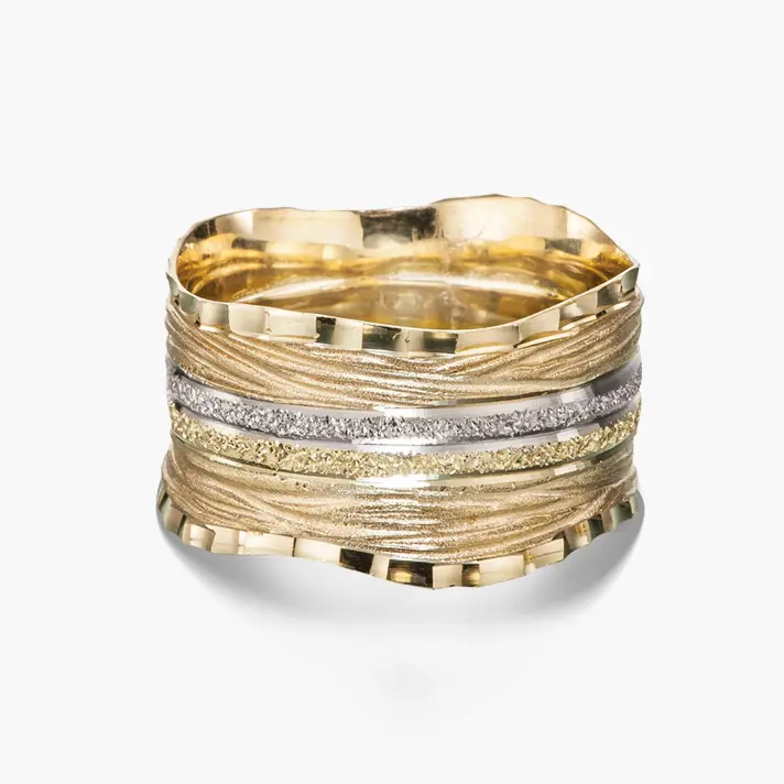 טבעת נישואין רחבה בשילוב של זהב צהוב וזהב לבן . ניתן להשיג את הטבעת בכל צבע זהב,גודל ורוחב.