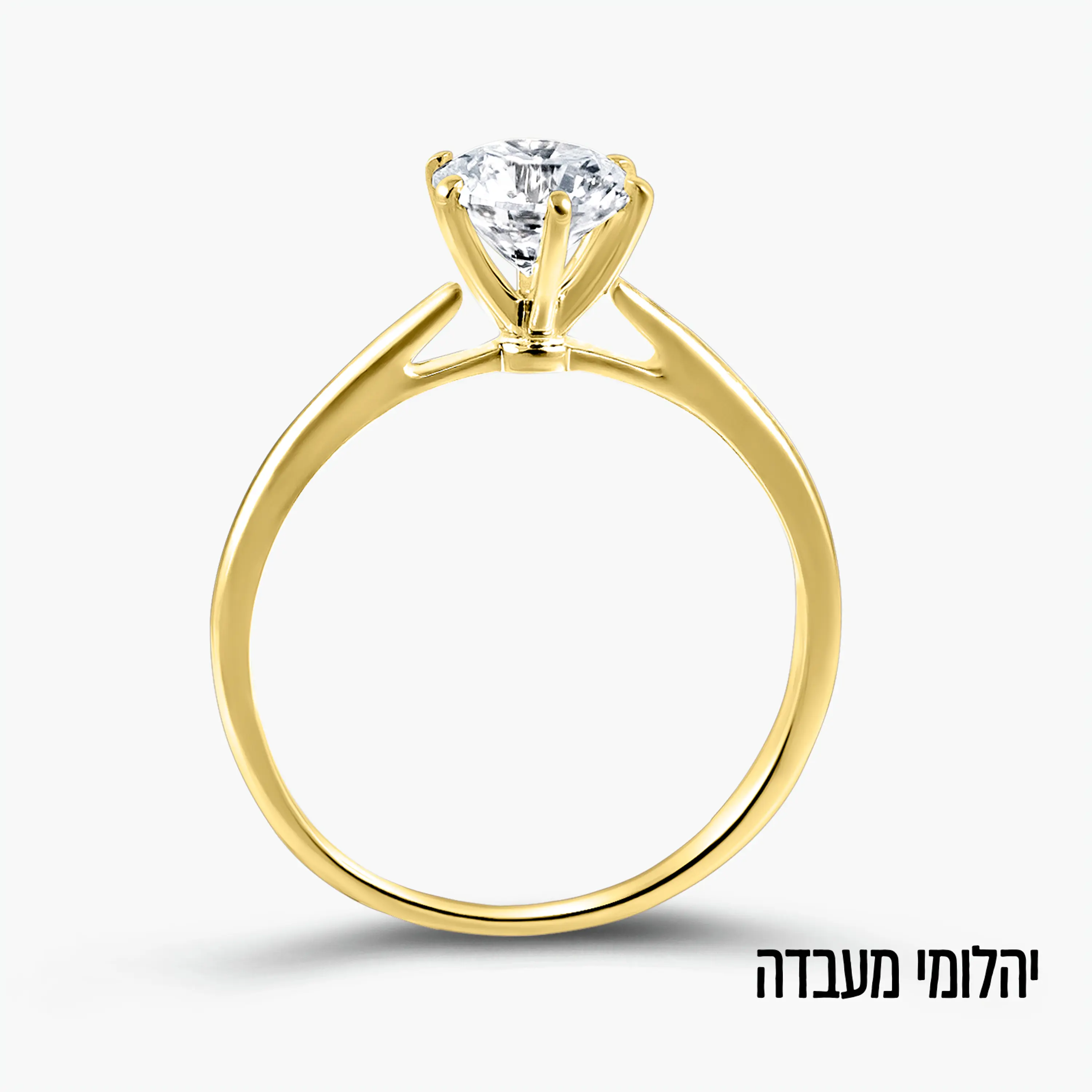 טבעת סוליטר זהב 14K בשיבוץ יהלום מעבדה