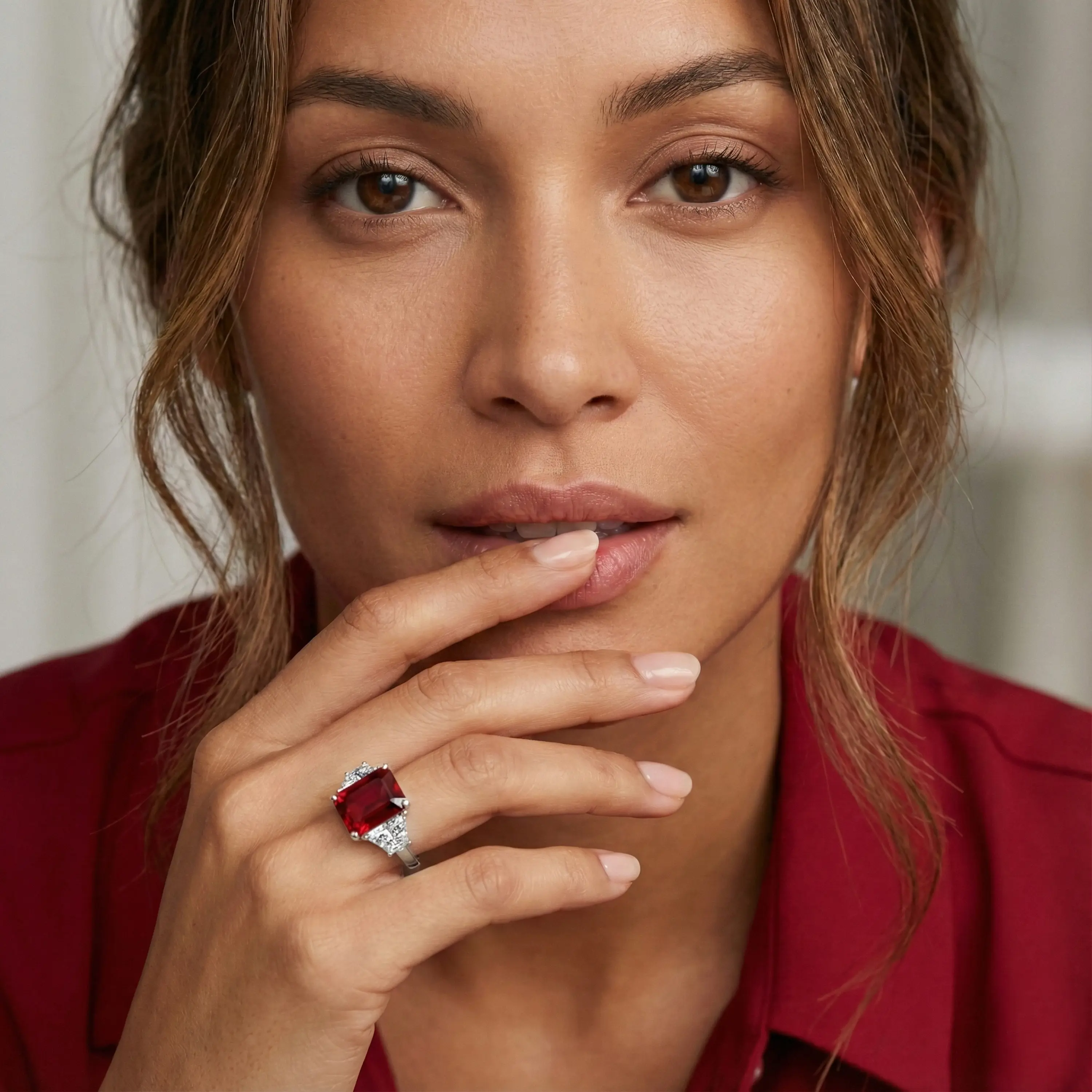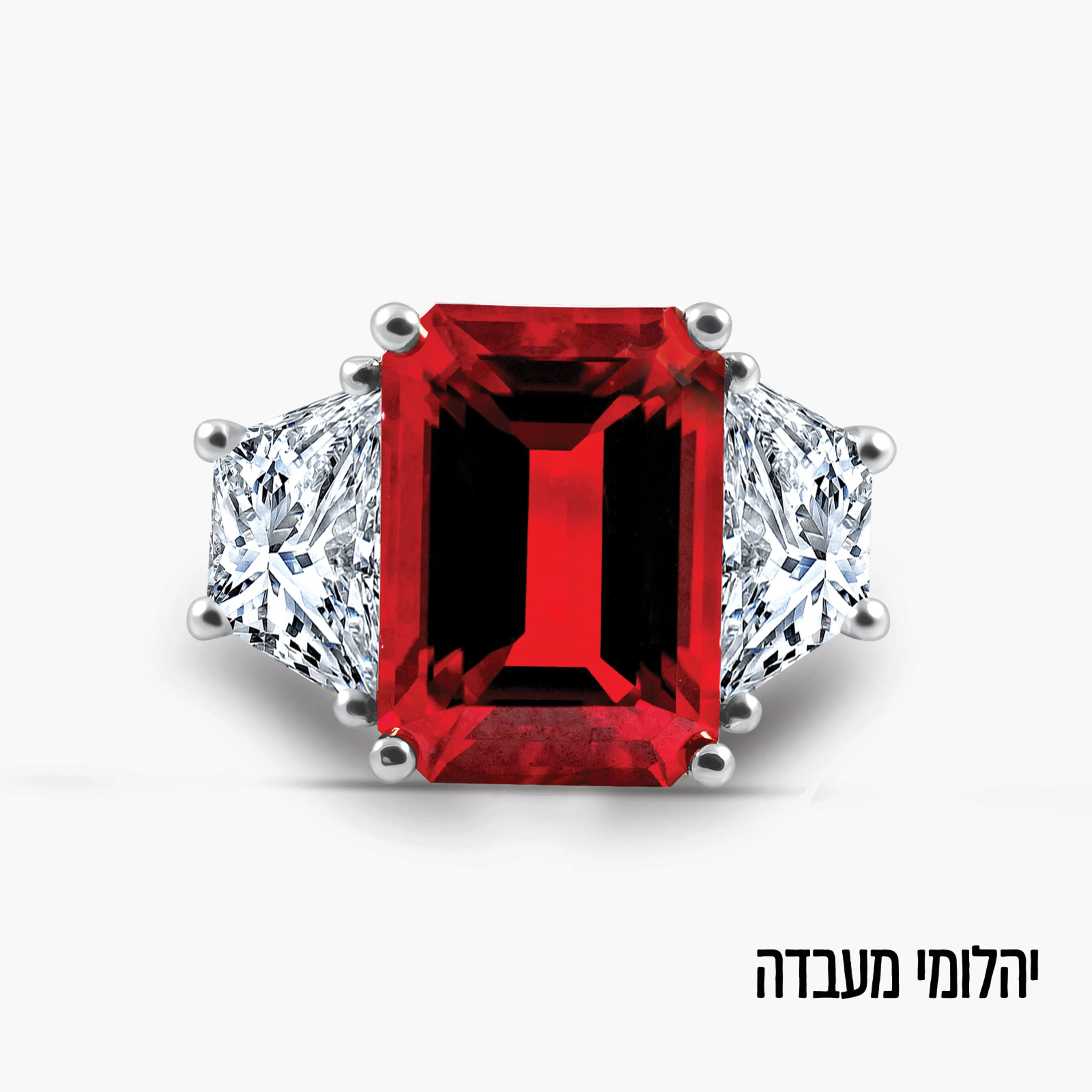 טבעת רובי ויהלומי מעבדה בזהב לבן 14K