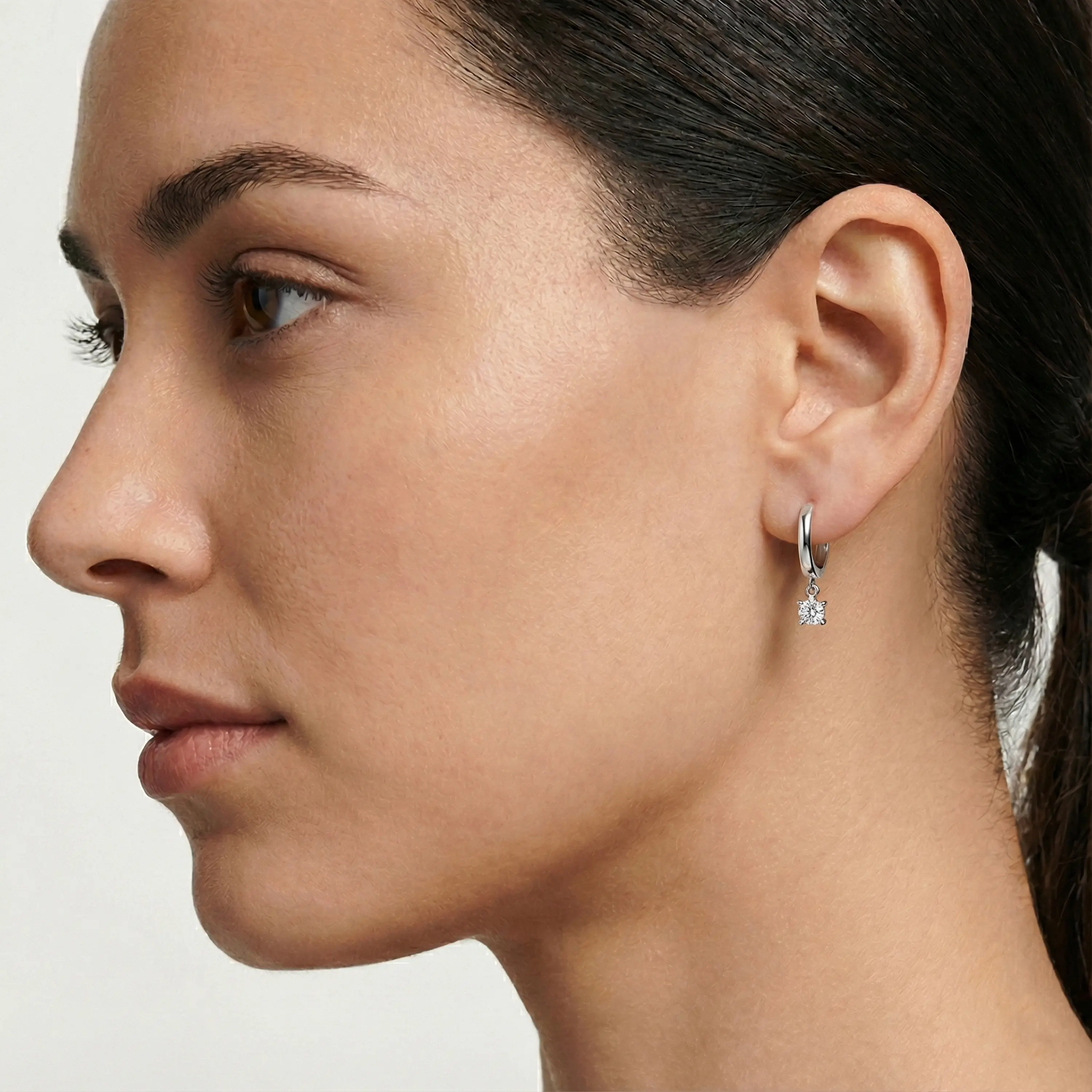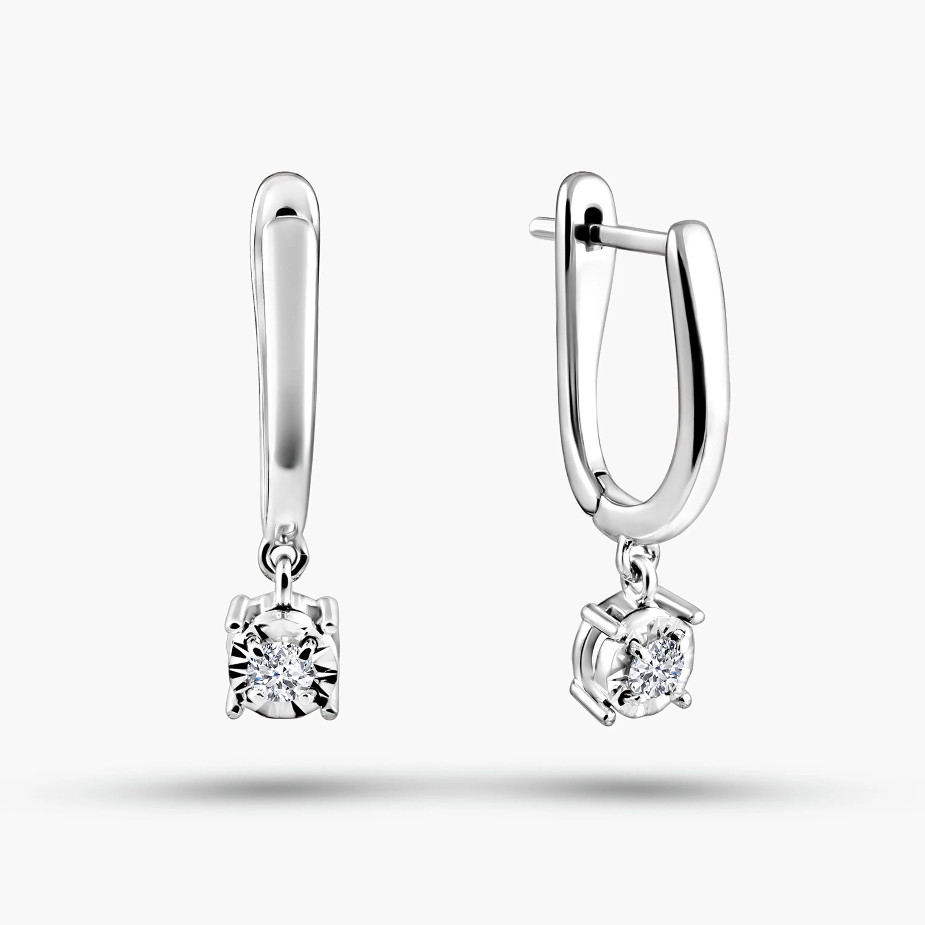 עגילי זהב לבן 14K עם יהלום בעיצוב תלוי