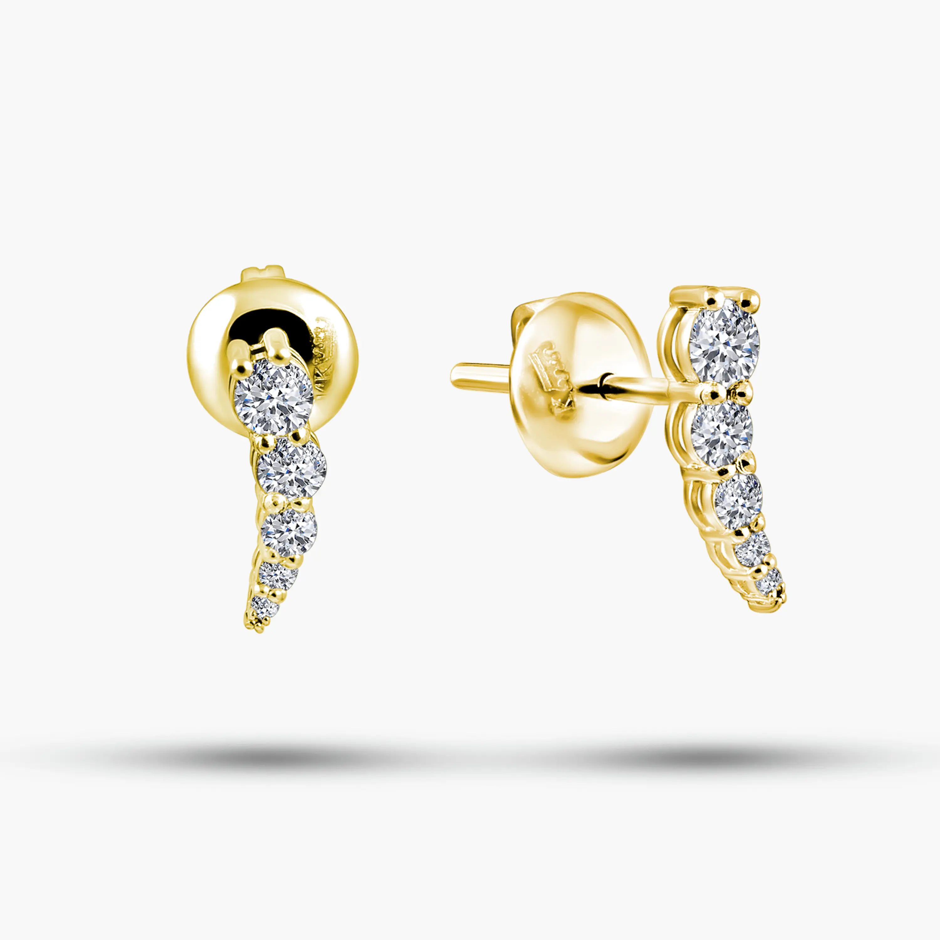 עגילי זהב 14K משובצים יהלומים בעיצוב מדורג