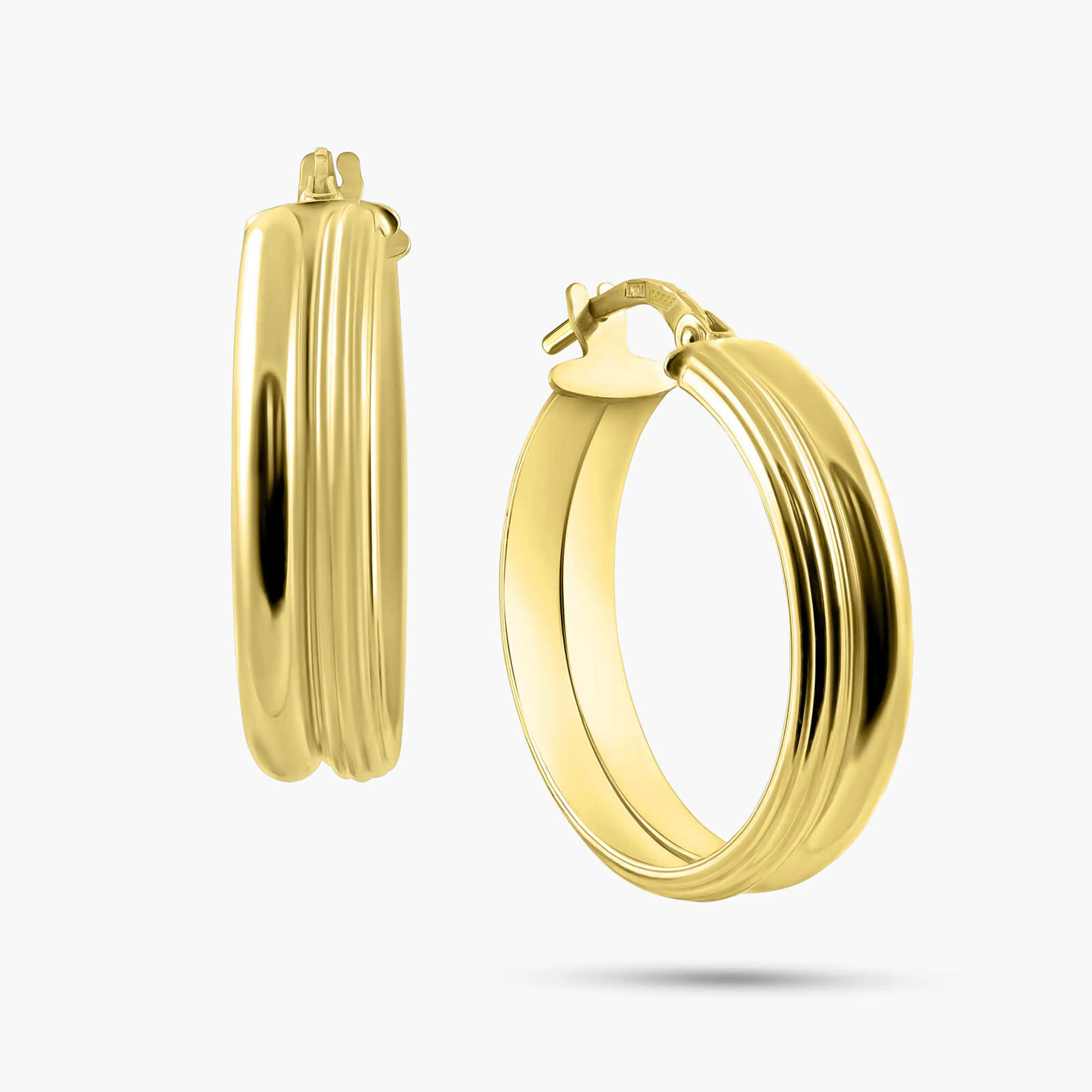 עגילי חישוק קלאסיים ובעלי נוכחות, עשויים זהב 14K בגימור צהוב מבריק. העיצוב העגול והעובי המודגש מעניקים מראה אלגנטי ועל זמני, כזה שלא תלוי בטרנדים ונשאר נכון לאורך שנים. קוטר העגילים כ 2.2 ס"מ ועוביים כ 0.6 ס"מ, שילוב שמייצר נוכחות ברורה על האוזן לצד נוחות בענידה יומיומית. תכשיט בסיס מדויק שמשתלב בקלות עם כל סגנון, לבד או בשילוב עגילים נוספים.