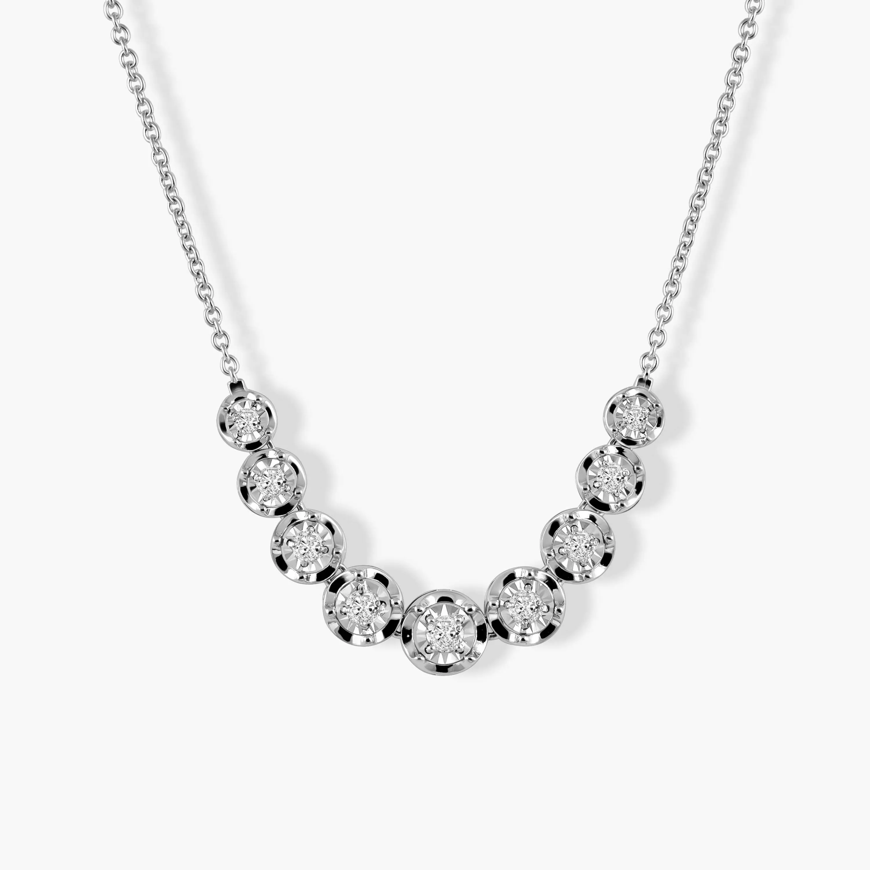 שרשרת זהב לבן 14K משובצת יהלומים בעיצוב מדורג