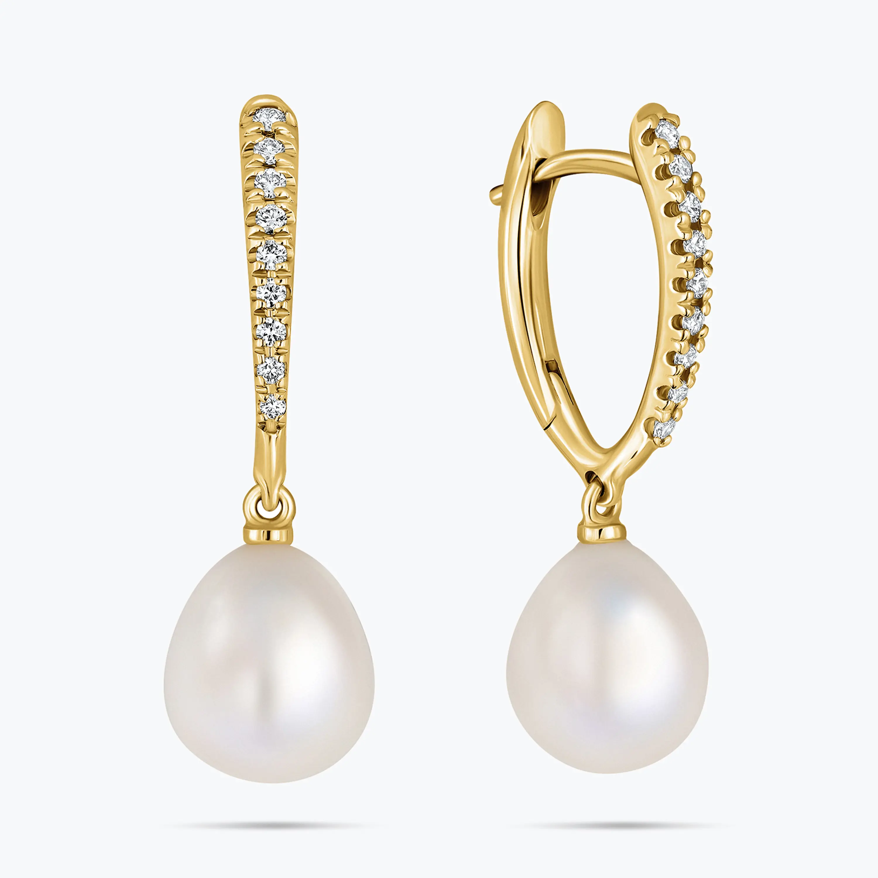 עגילים אלגנטיים עשויים זהב 14K בעיצוב תלוי ונקי, משלבים פנינה עגולה בגימור רך עם שורת יהלומים טבעיים המוסיפים נצנוץ עדין. עיצוב קלאסי ועל זמני שמחמיא לאוזן ומתאים גם ליום וגם לאירוע ערב. שילוב מאוזן של יוקרה, רוך ואלגנטיות מדויקת.