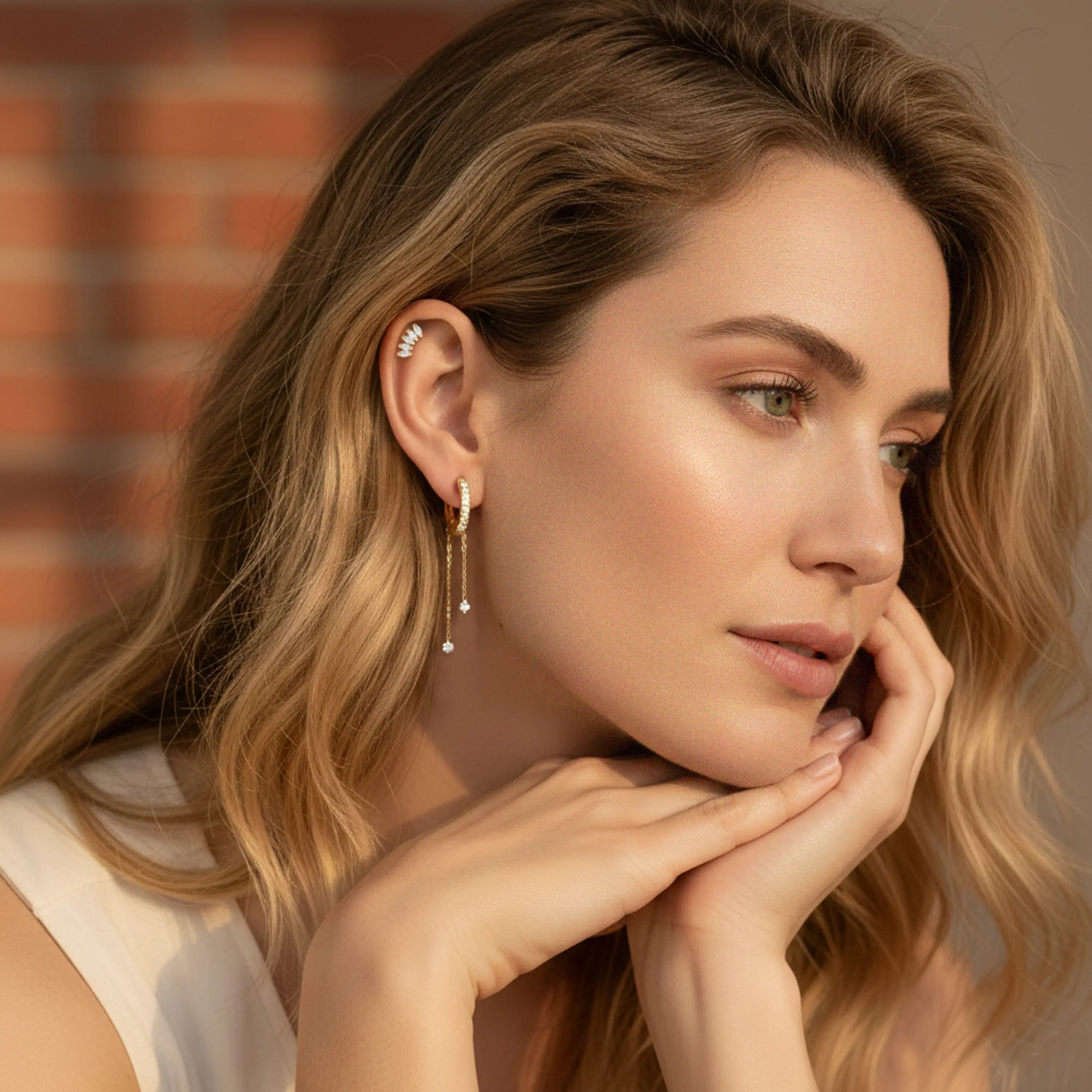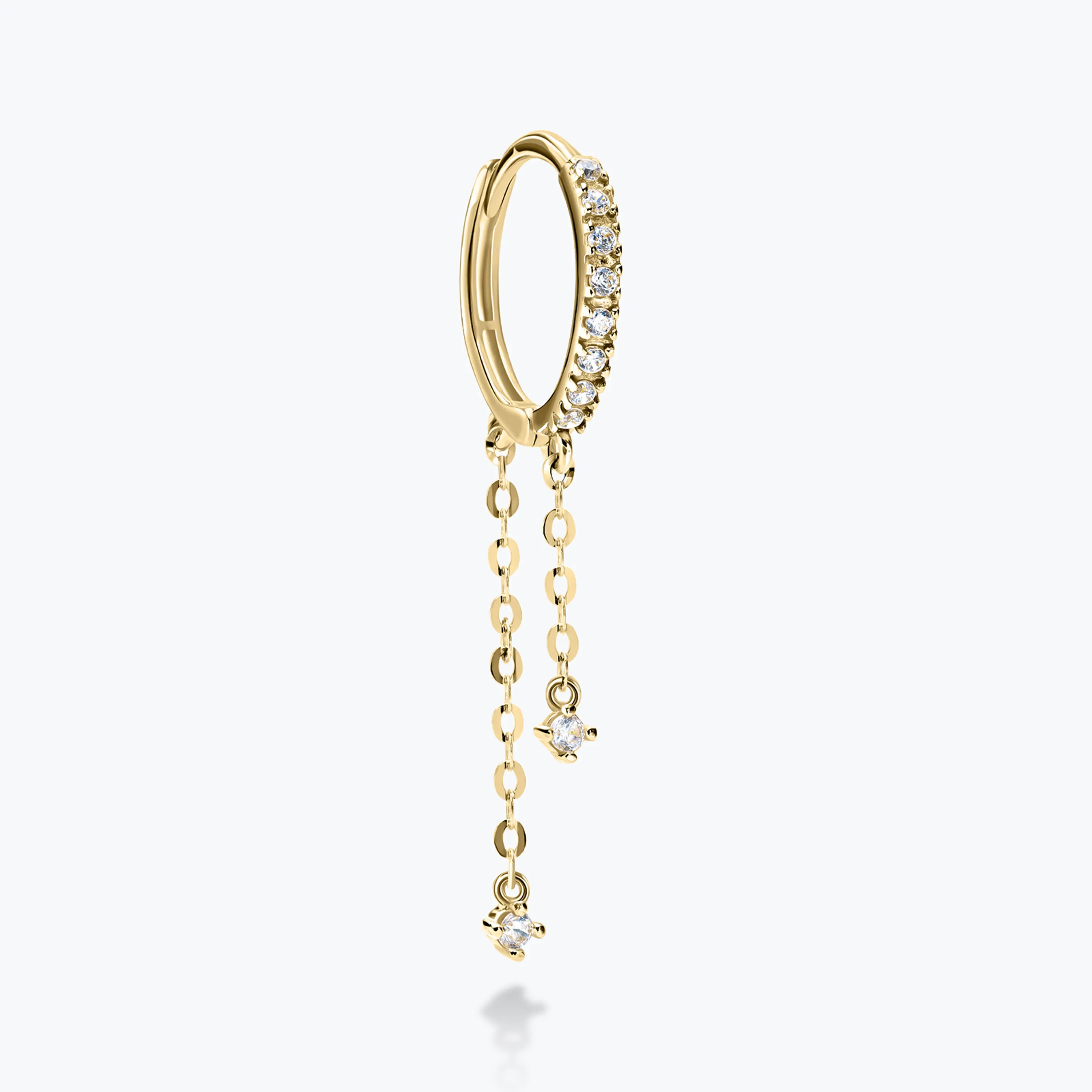 עגיל הליקס עשוי זהב 14K משובץ זרקונים עם שתי שרשראות