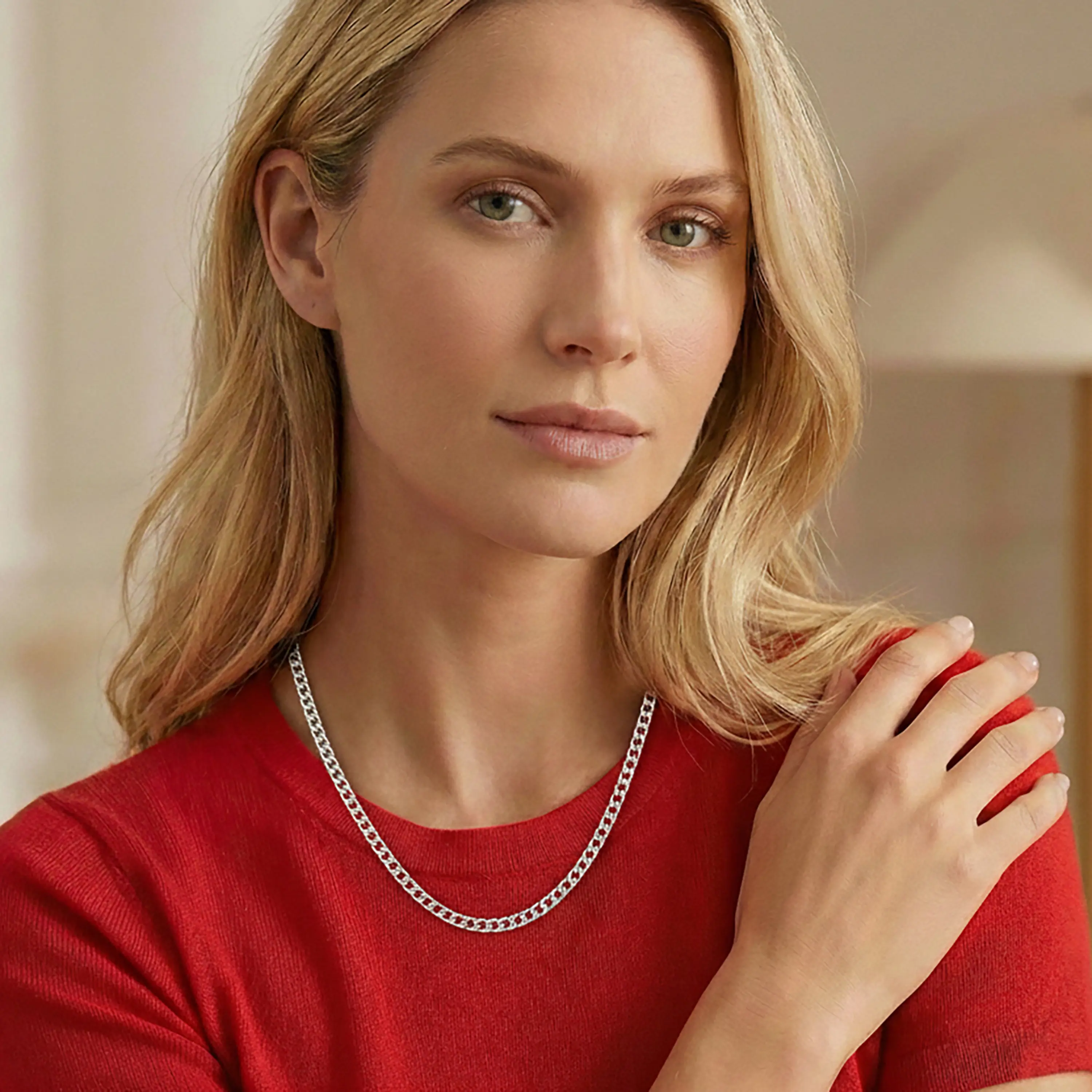 שרשרת עשויה זהב לבן 14K בעיצוב חוליות מעוגלות ומלוטשות למראה נקי ועל זמני. האורך 50 סנטימטר מאפשר ענידה נוחה בפני עצמה או בשילוב שכבות עם שרשראות נוספות. העיצוב האלגנטי מתאים לשימוש יומיומי וגם להשלמת מראה ערב מוקפד.