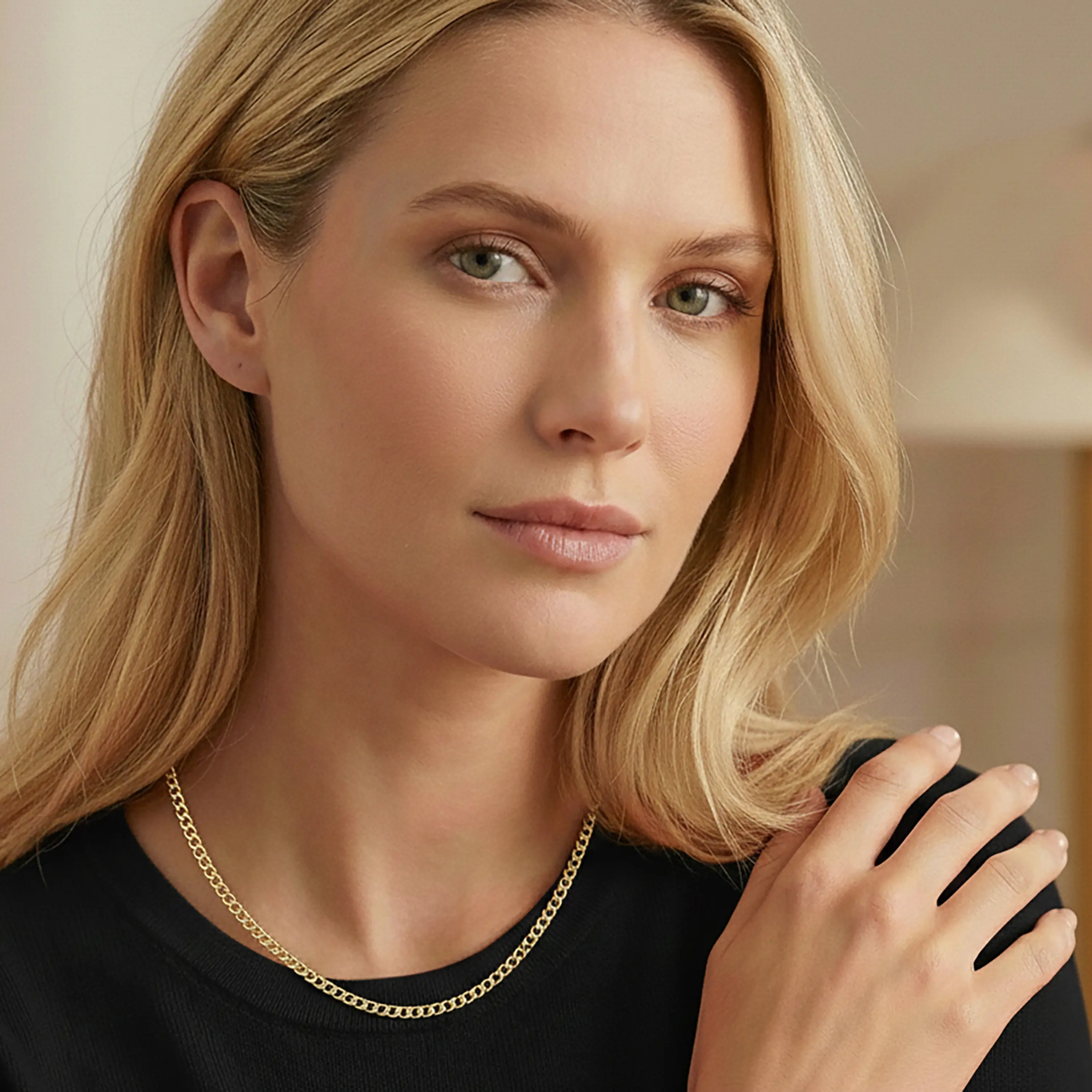 שרשרת עשויה זהב 14K בעיצוב חוליות מעוגלות ומלוטשות למראה נקי ועל זמני. האורך 45 סנטימטר מאפשר ענידה נוחה בפני עצמה או בשילוב שכבות עם שרשראות נוספות. העיצוב האלגנטי מתאים לשימוש יומיומי וגם להשלמת מראה ערב מוקפד.