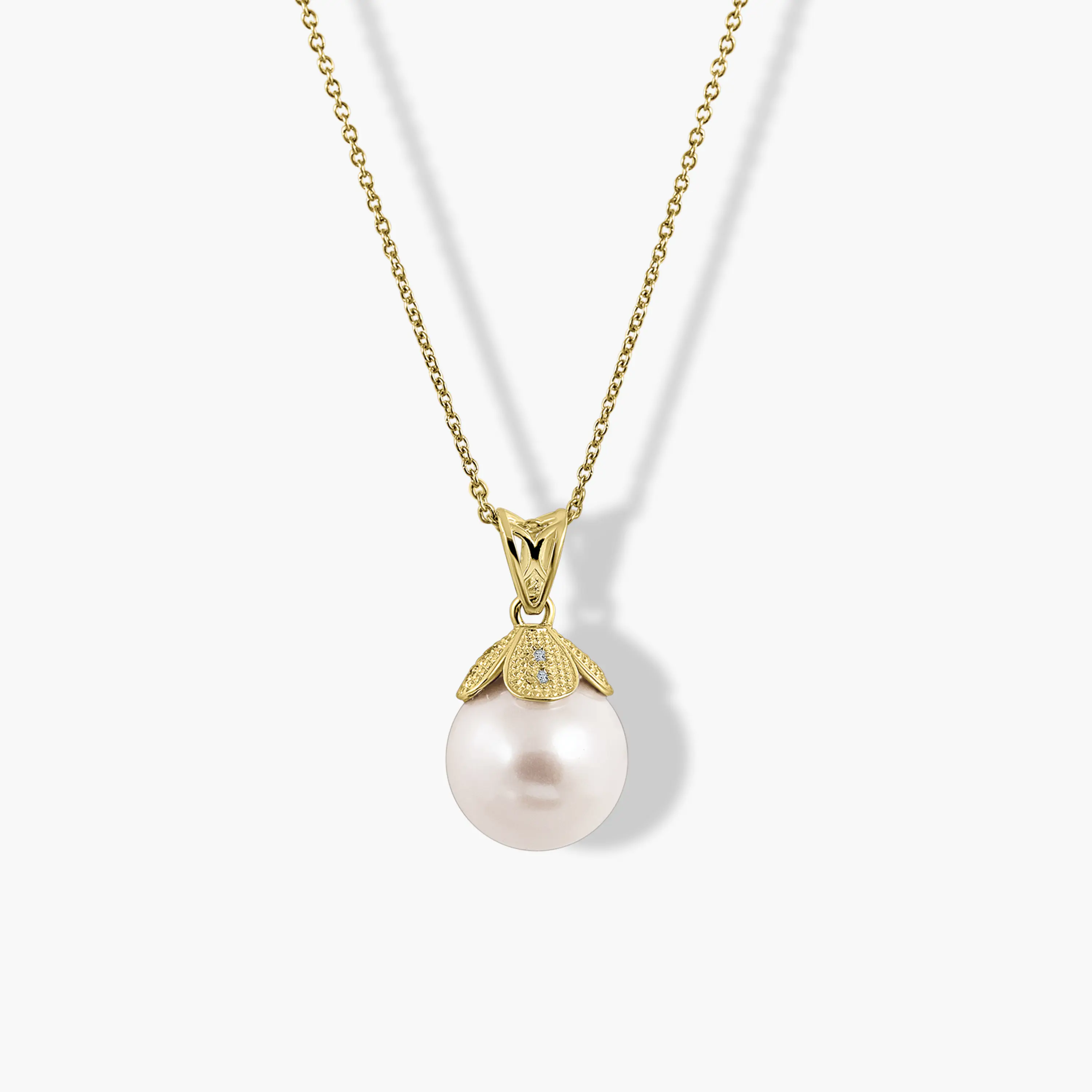תליון זהב 14K בשיבוץ פנינה ויהלומים