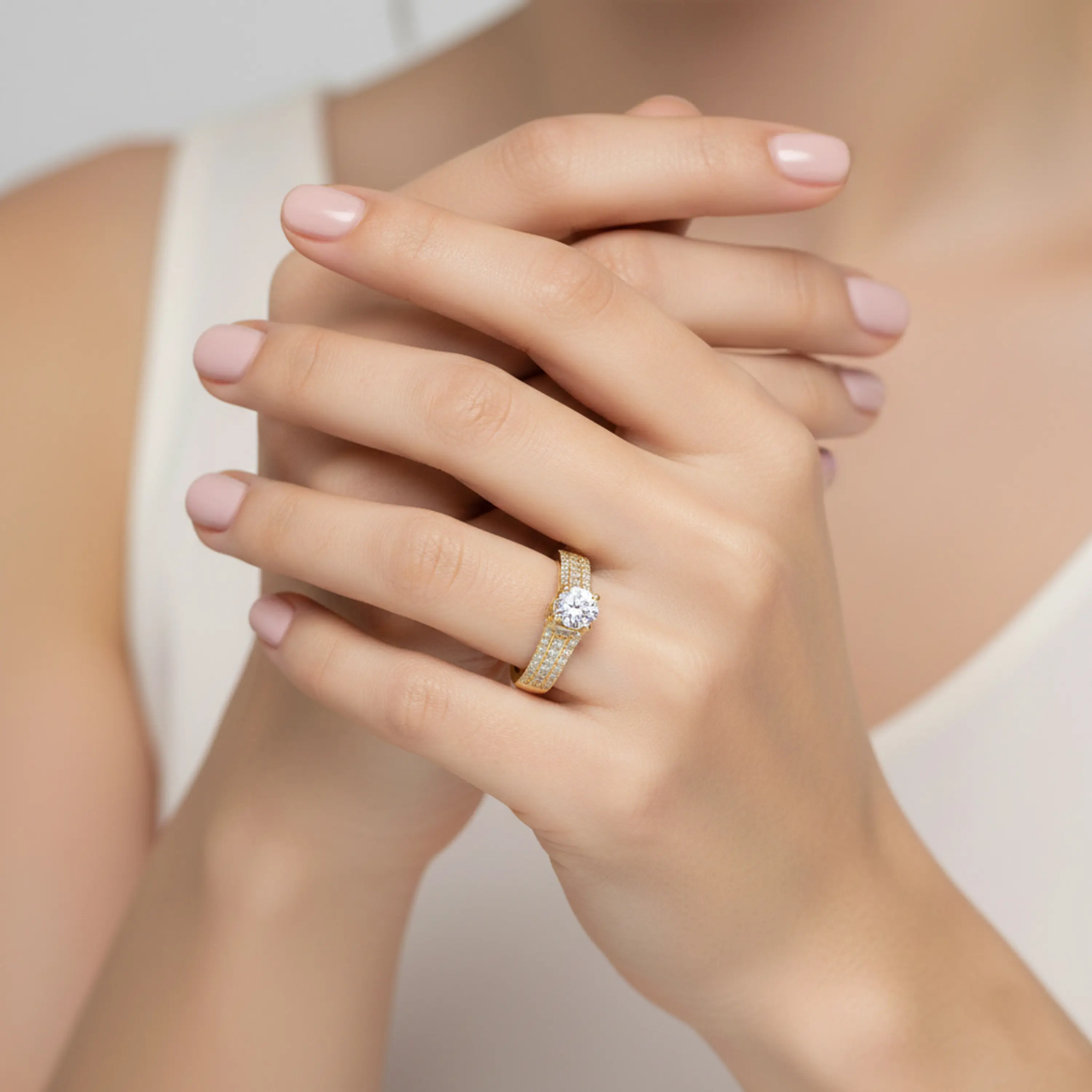 טבעת זהב 14K משובצת יהלומים