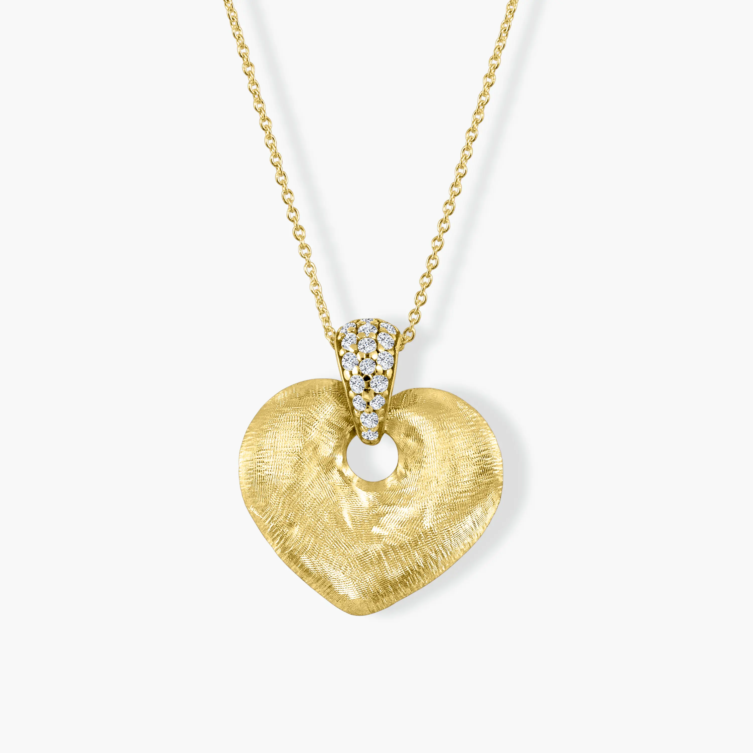 תליון לב עשוי זהב 14K בגימור עדין ומודגש המעניק לתכשיט מראה ייחודי ומרקם עשיר. הלולאה העליונה משובצת זרקונים לבנים להוספת ברק נקי ומדויק. גודל התליון 2.0 על 2.0 ס"מ, מידה מאוזנת המשלבת נוכחות אלגנטית עם קלילות יומיומית. שילוב של משטח מעובד עם שיבוץ מבריק יוצר תכשיט נשי, מחמיא ועל זמני.