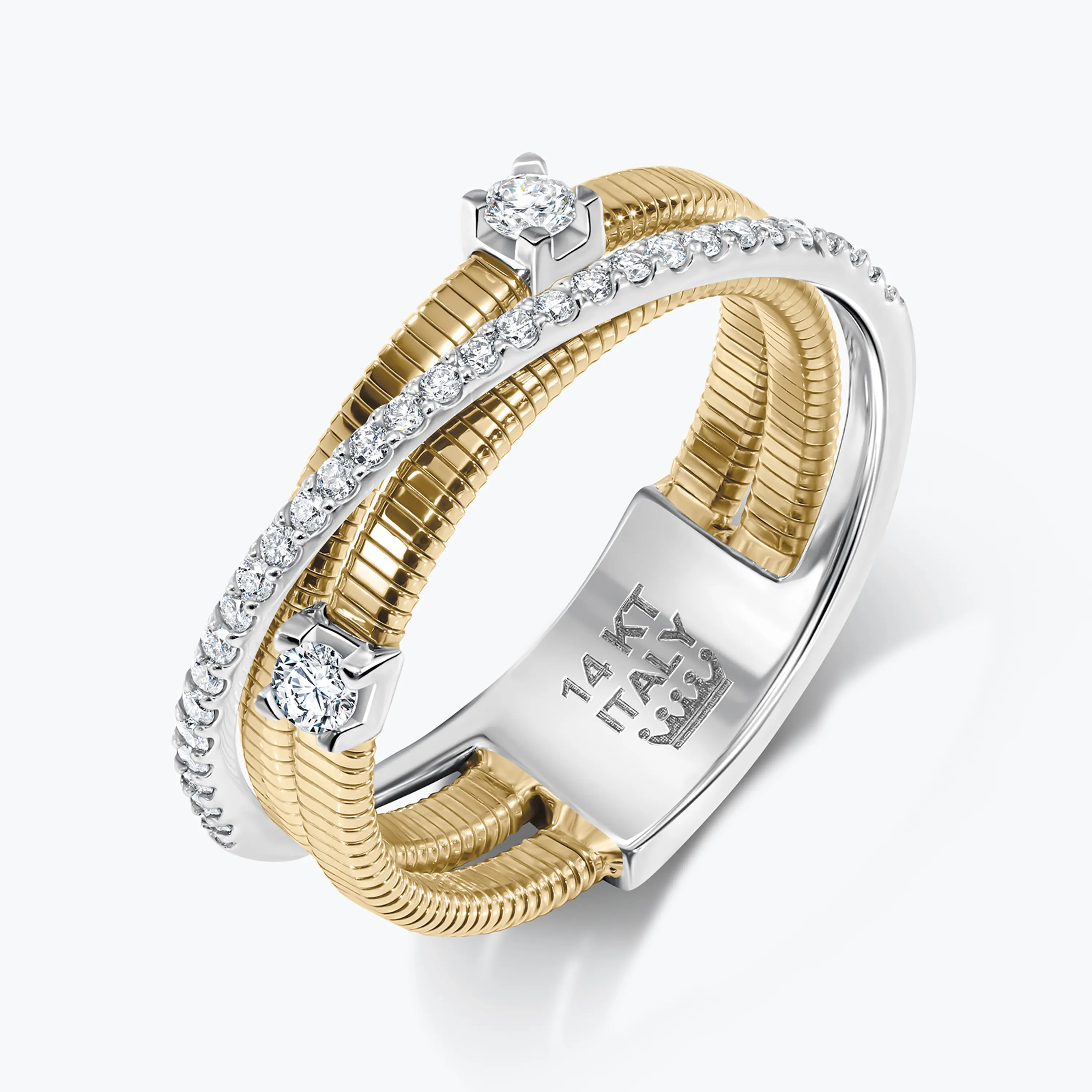 טבעת זהב 14K בי קולור בשיבוץ יהלומים
