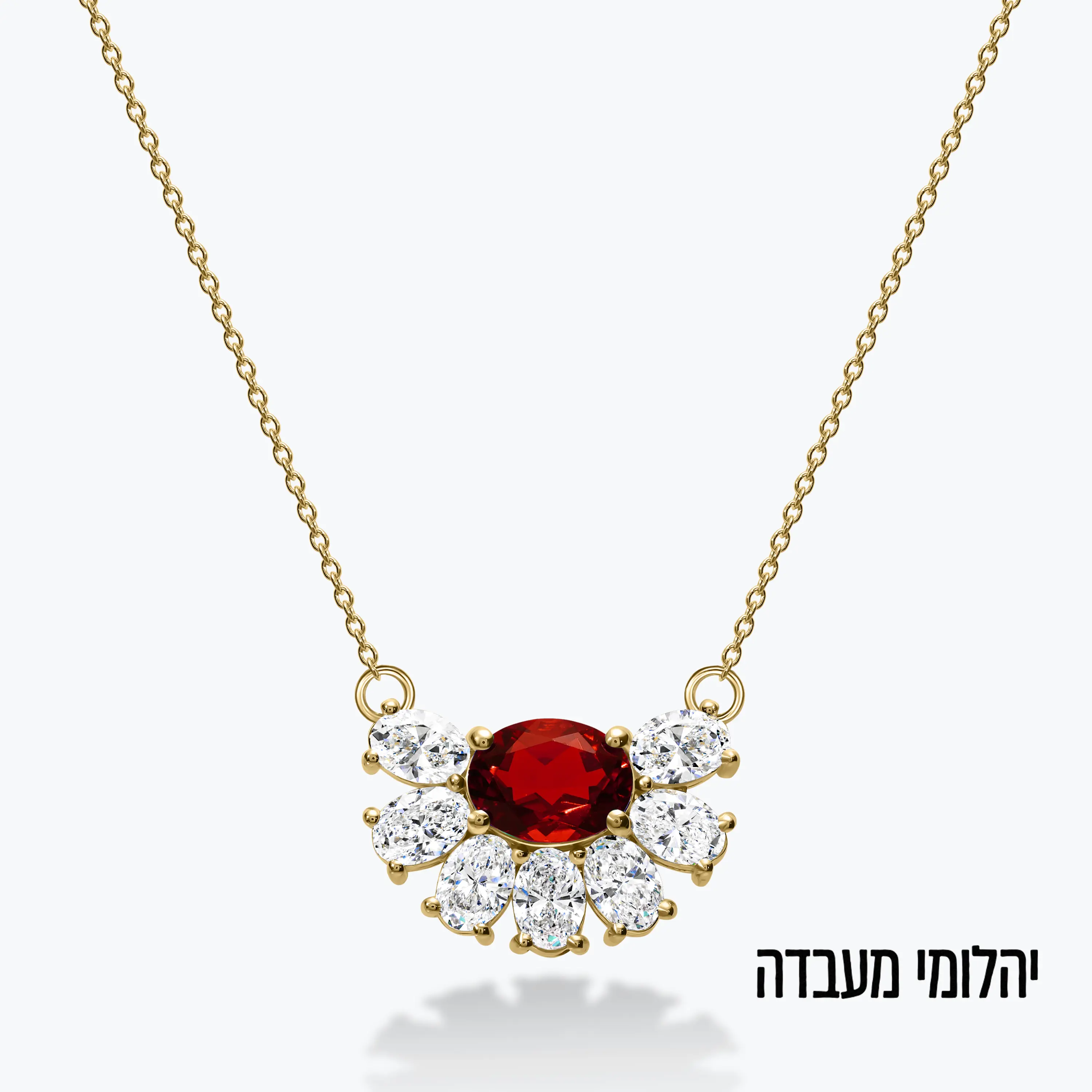 תליון זהב 14K בעיצוב מניפה משובץ יהלומים ורובי