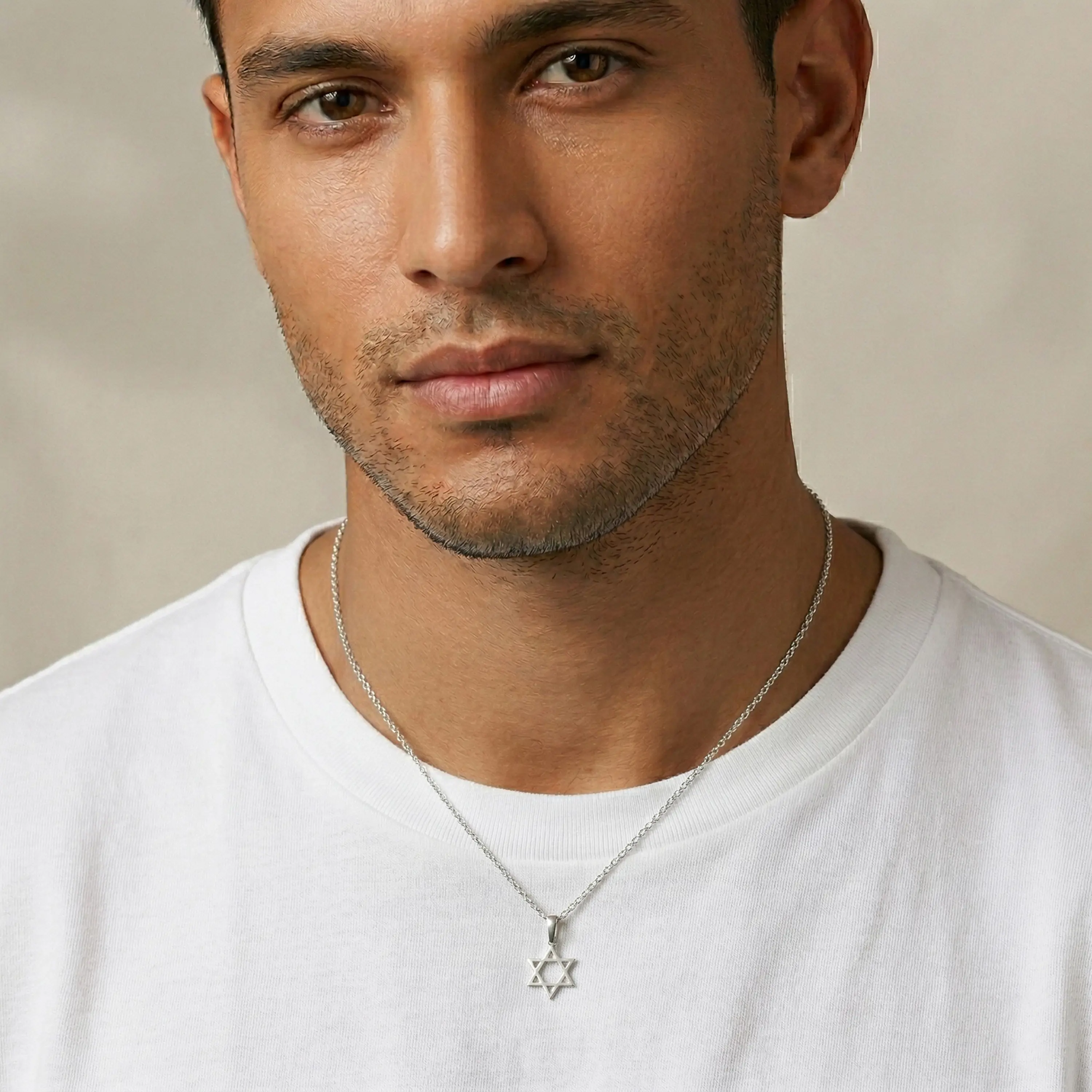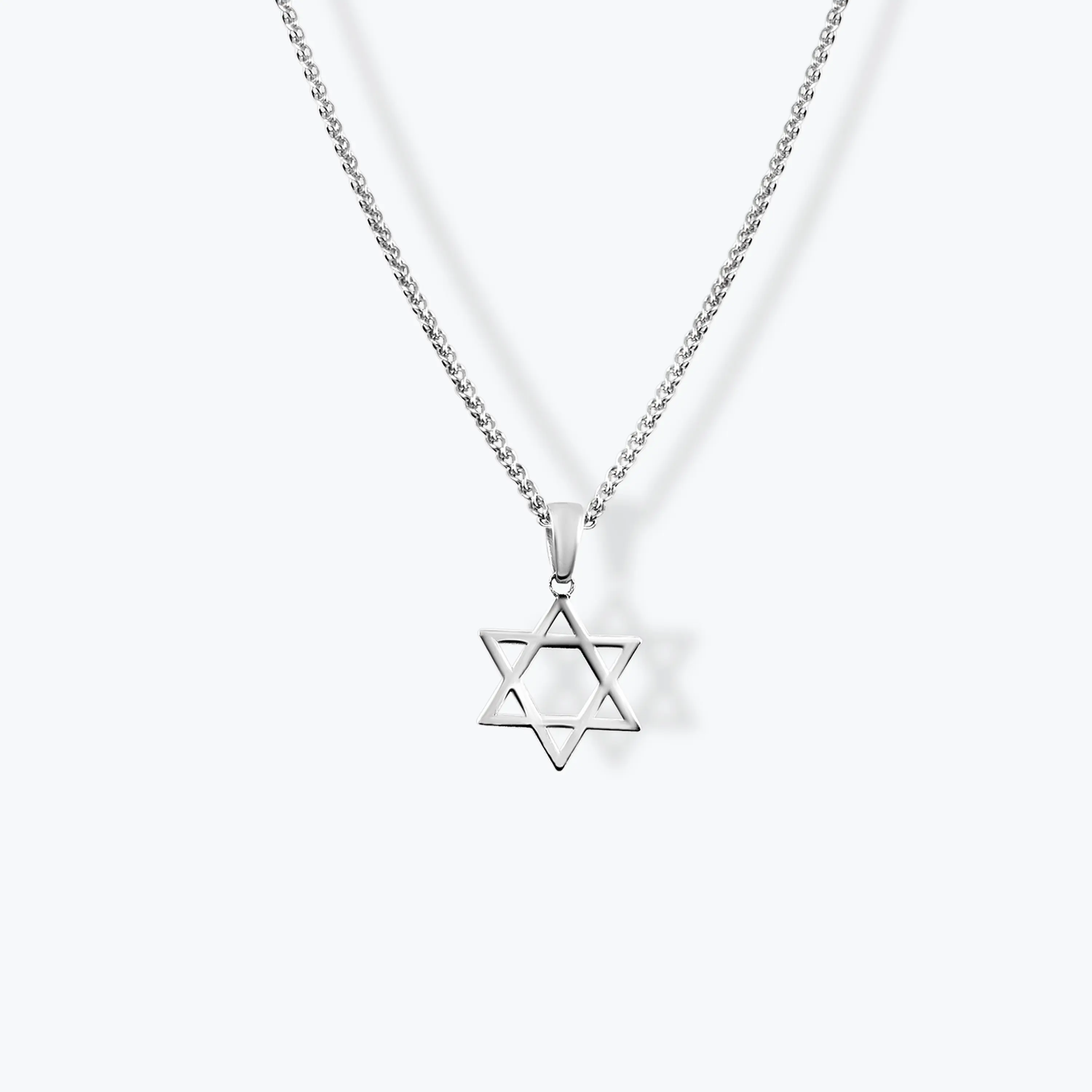 תליון מגן דוד מזהב לבן 14K בעיצוב נקי וחלק המדגיש את הצורה האייקונית והעל זמנית של הסמל. מידות התליון 1.3 ס"מ על 1 ס"מ ומעניקות לו מראה עדין ומאוזן המתאים לענידה יומיומית. הקווים החלקים והגימור המלוטש יוצרים תכשיט אלגנטי ופשוט במראהו אך בעל משמעות עמוקה, המשתלב בקלות עם שרשרת עדינה ומעניק נגיעה קלאסית ומכובדת לכל הופעה.