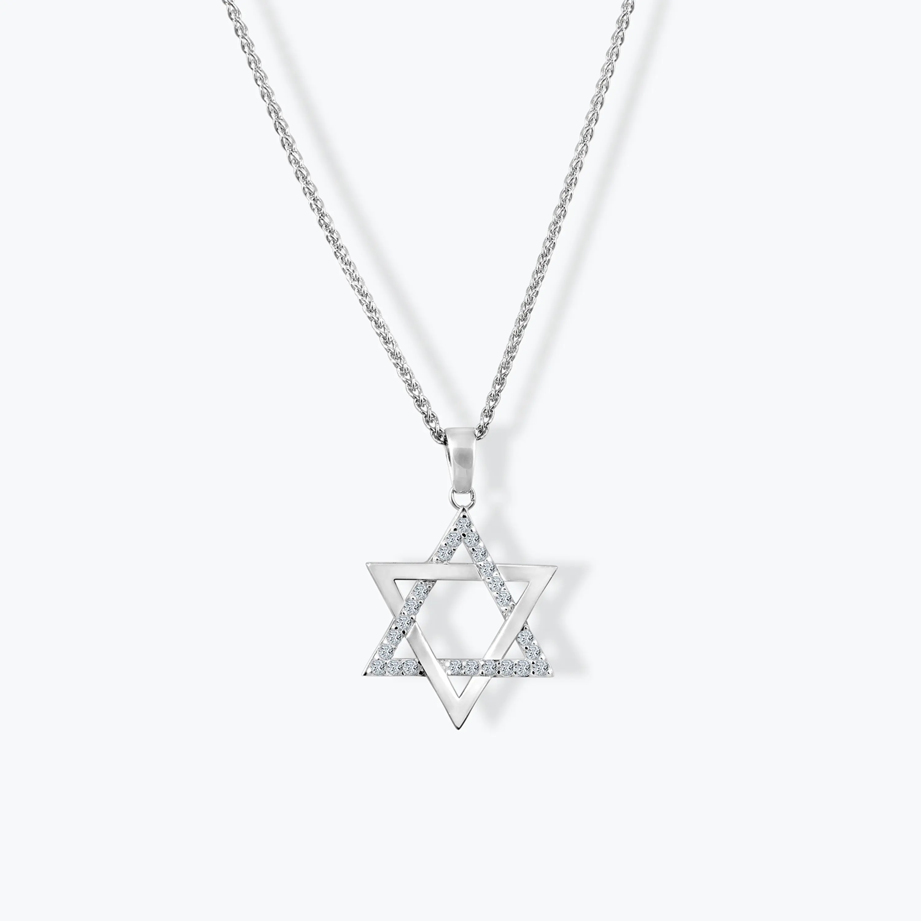 תליון מגן דוד זהב לבן 14K משובץ זרקונים