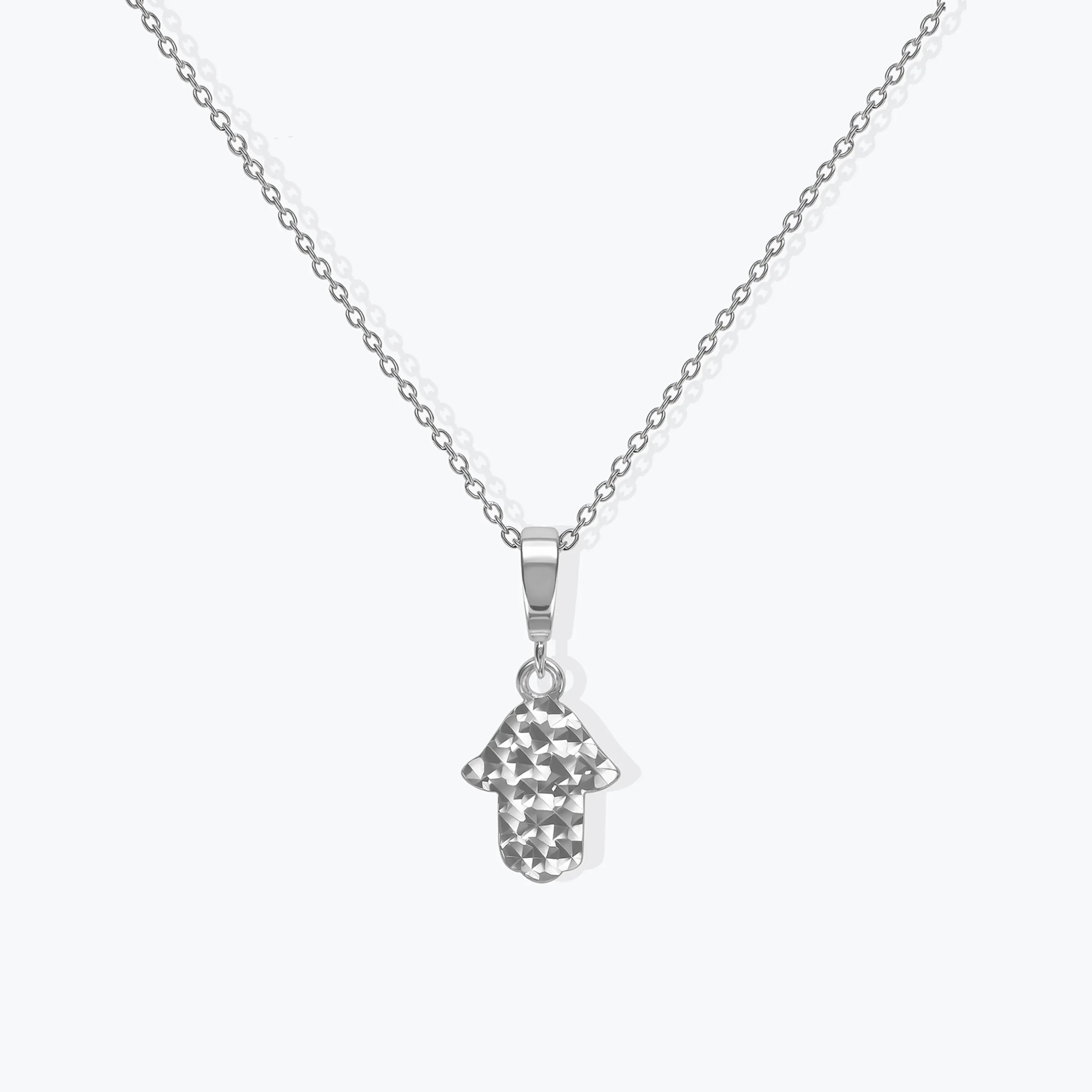 תליון חמסה קטן בזהב לבן 14K רקוע