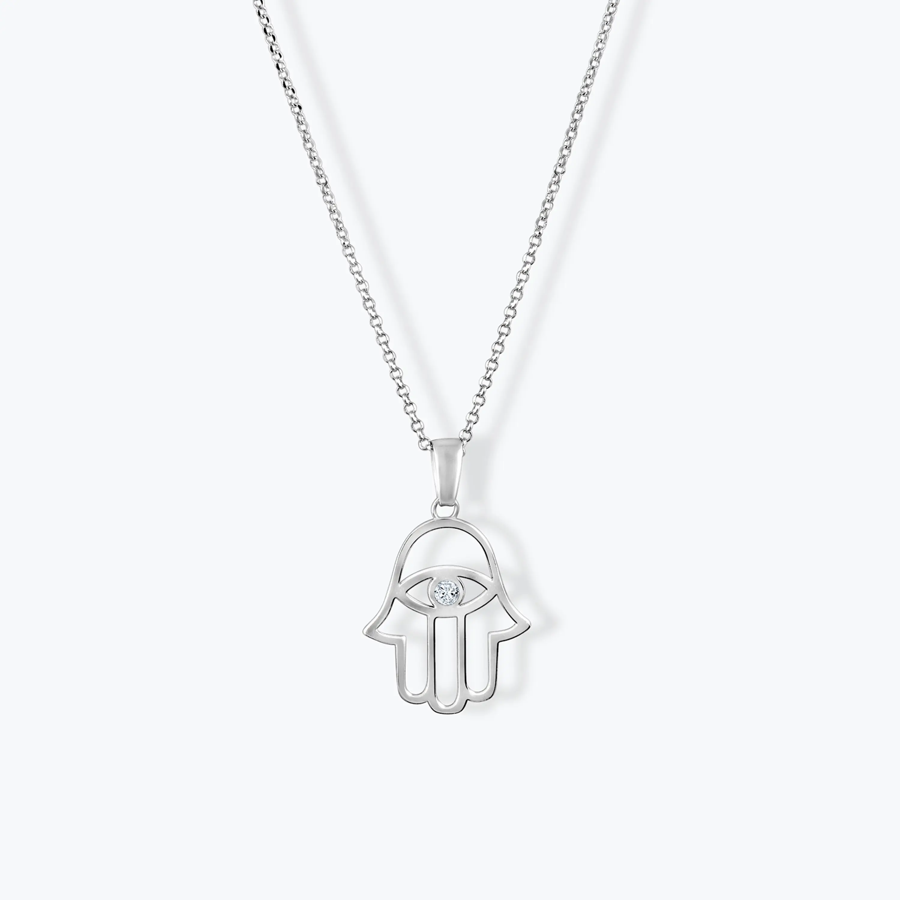תליון חמסה זהב לבן 14K משובץ זרקון