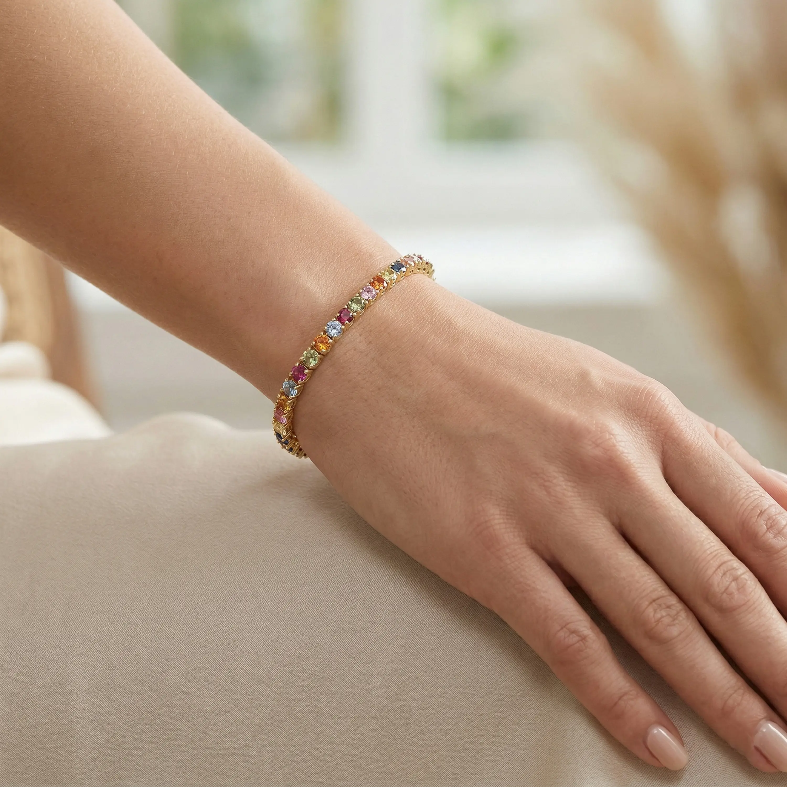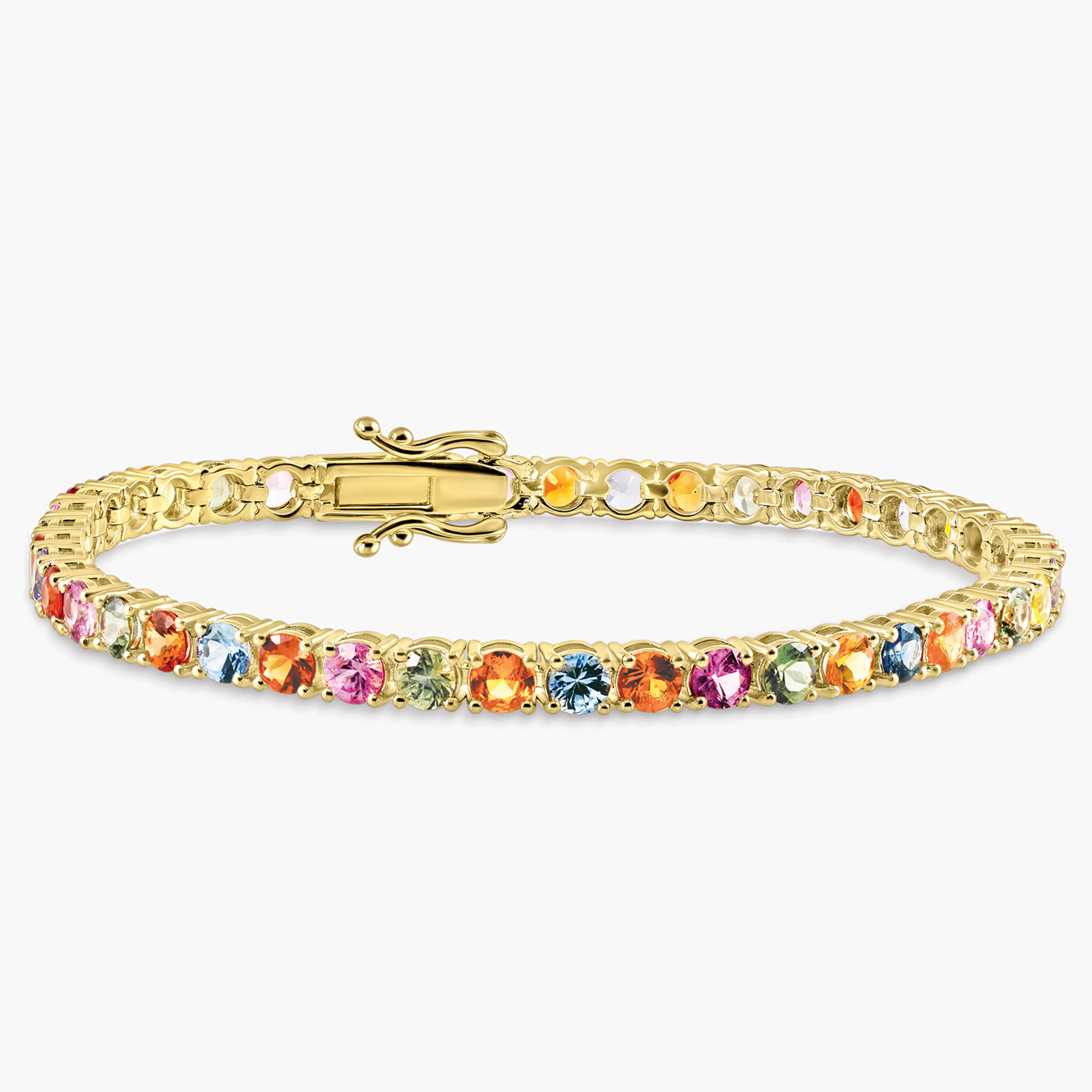 צמיד טניס זהב 14K משובץ ספירים צבעוניים