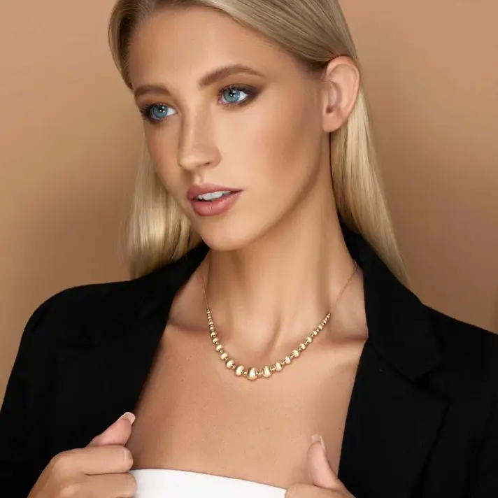 שרשרת כדוריות זהב בגימור מט משי ומבריק