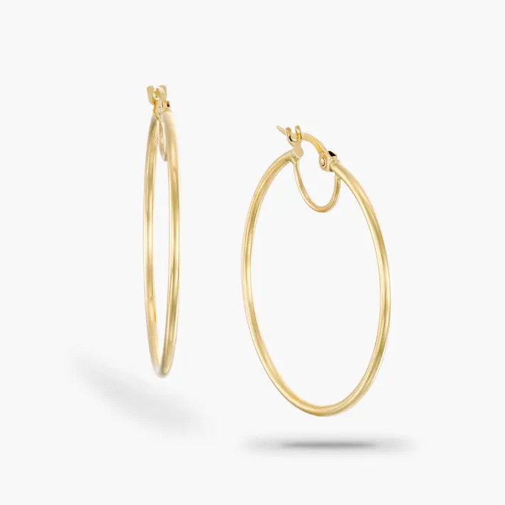 עגילי ג'יפסי בזהב 14K צהוב בקוטר 3 ס"מ.