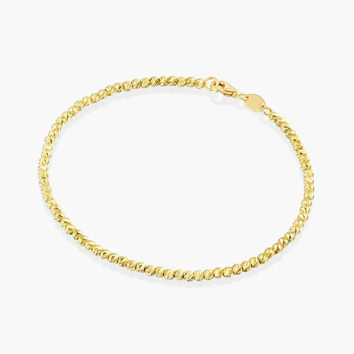 צמיד זהב 14K הבנוי מכדורי זהב בעיבוד לייזר מנצנץ בקוטר 18.5. קוטר החרוז 2 מ"מ